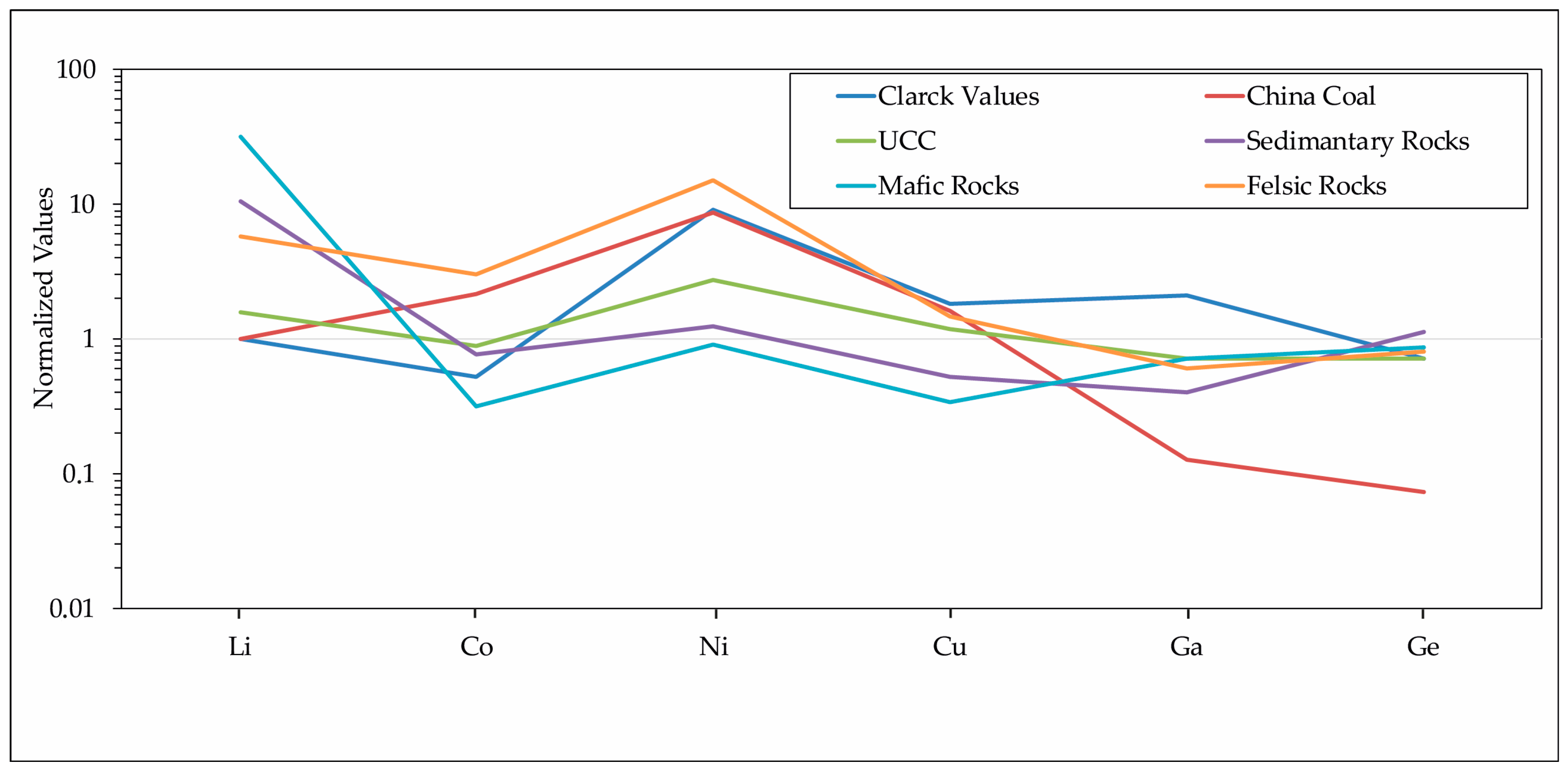 5.4. Geochemical Distribution of Li, Ni, Cu, Co, Ga and Ge