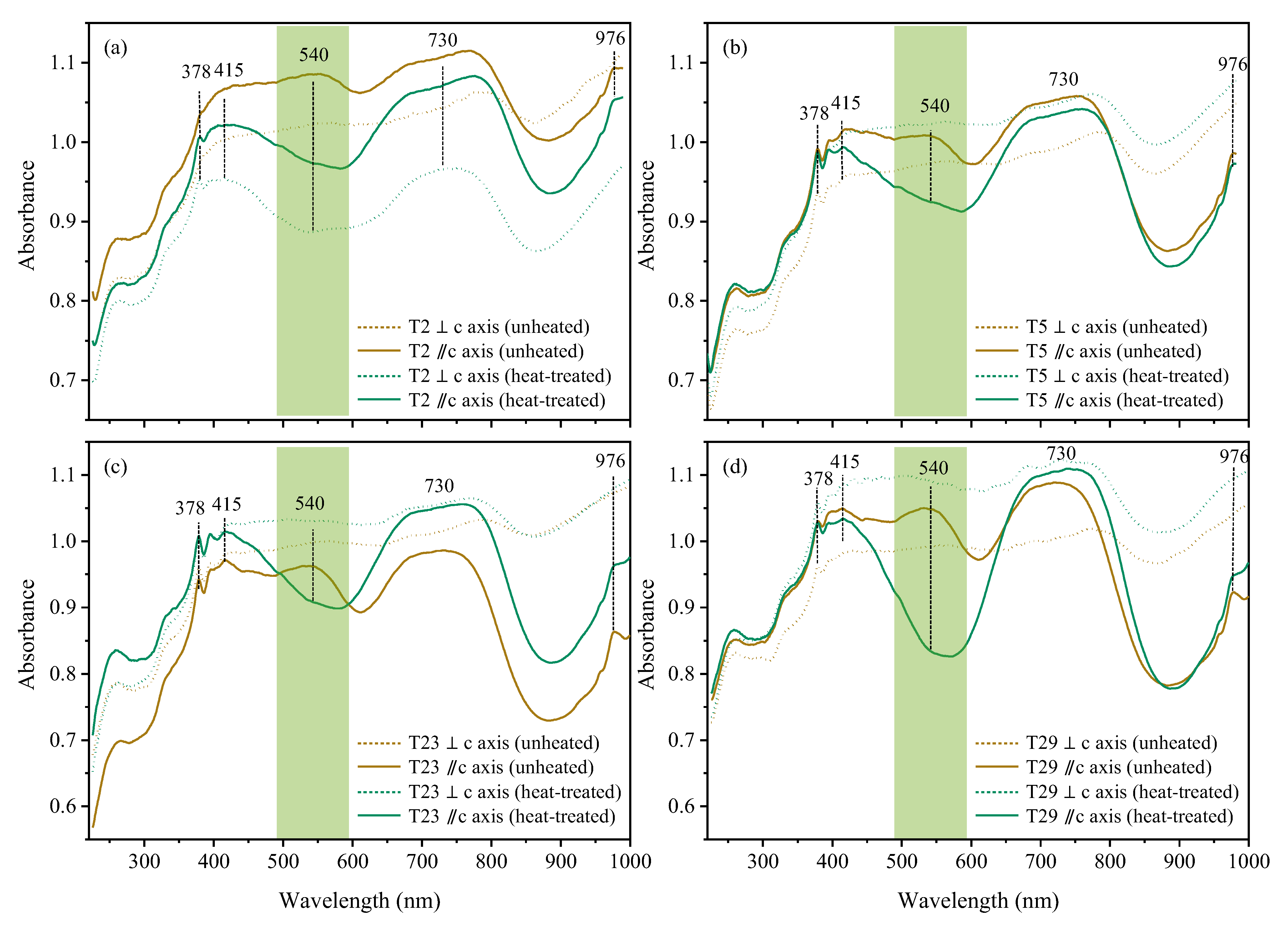 Chicago/Turabian StyleLi, Kun, and Suwei Yue. 2025. "Mechanisms of Thermal Color Change in Brown Elbaite–Fluorelbaite Tourmaline: Insights from Trace Elements and Spectral Signatures" Minerals 15, no. 10: 1032. https://doi.org/10.3390/min15101032