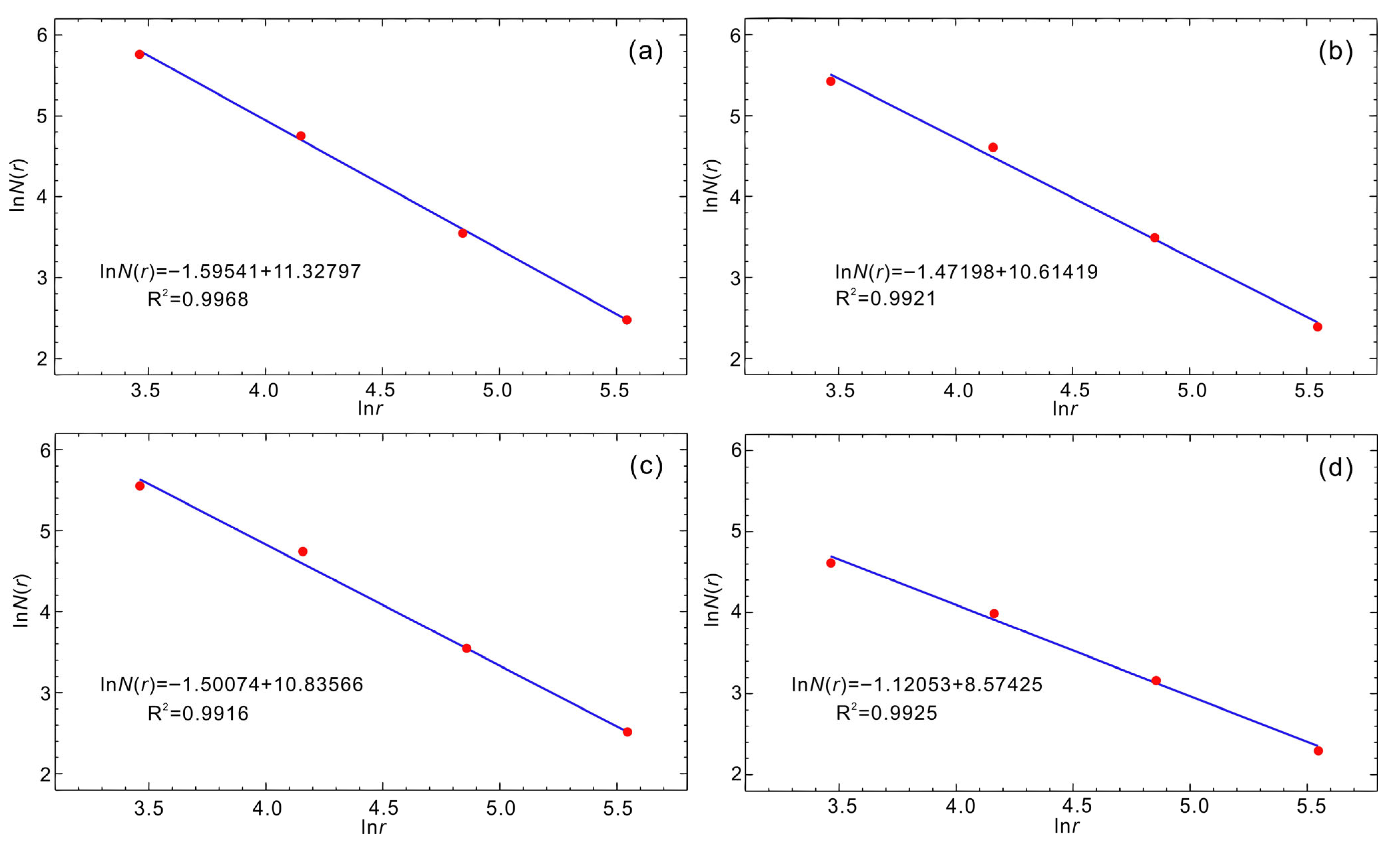 - Kong, F.C.; Ding, G.Y. The implications the fractal dimension values of lineaments. Earthquake 1991, 5, 33–37. [Google Scholar]