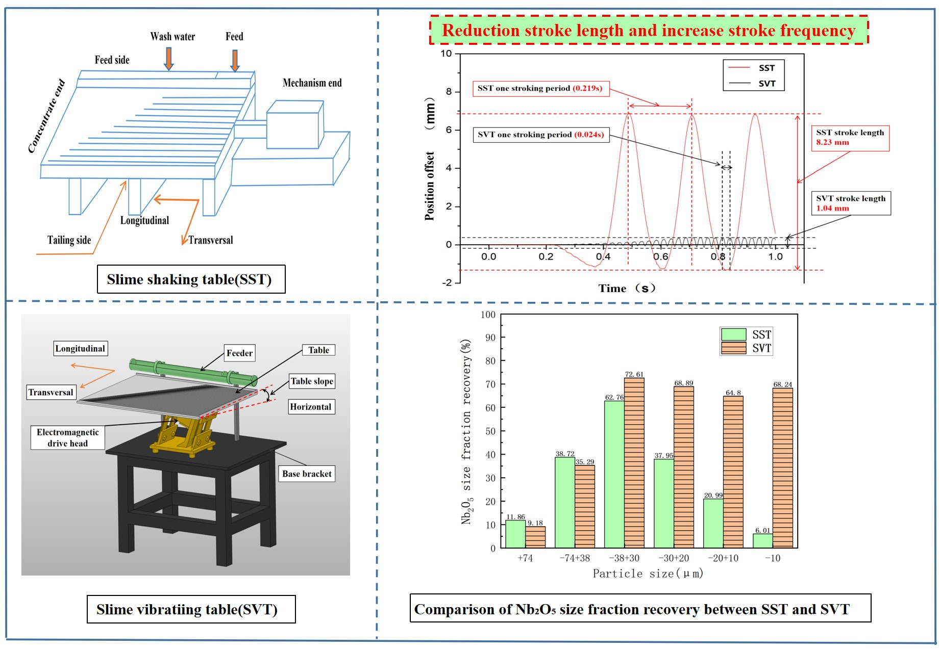 - Under the optimized operating condition, SVT produced a primary concentrate assaying 1.31% Nb2O5 with a recovery of 52.64%, which was 0.22% and 26.59% higher than that of SST, respectively. Size-by-size analysis indicated that the enhanced separation performance of SVT was mainly attributed to its superior recovery of Nb2O5 in the −38 μm fraction.