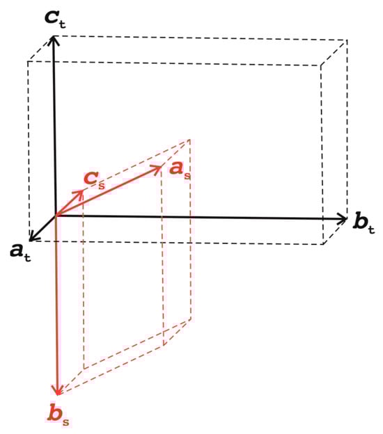 The relations between the unit cell vectors of kuliokite-(Y) determined in this work (in black) with those determined previously (red).
