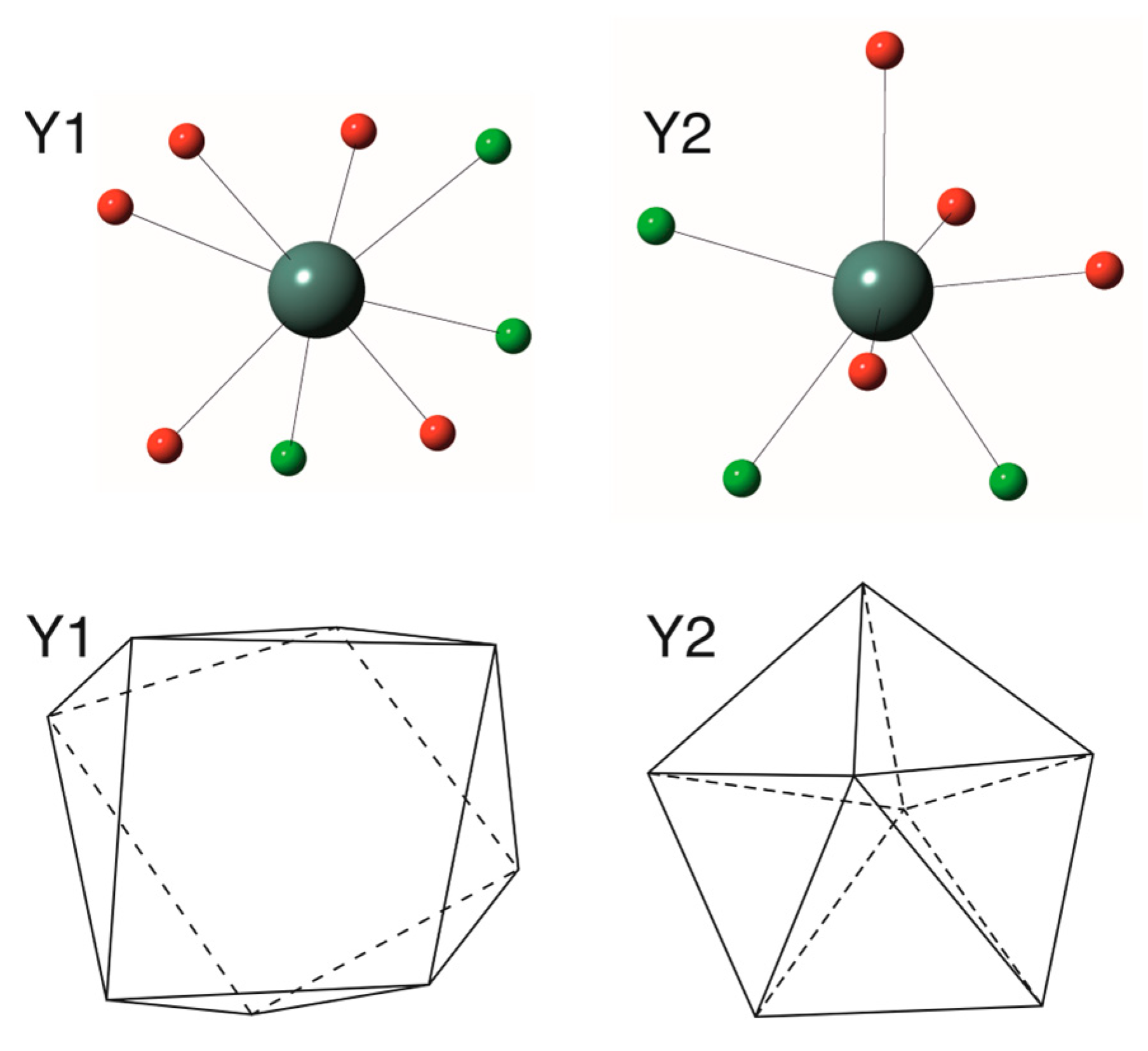 Y1–F2 | 2.353(5) | Y2–O4 | 2.297(4) |