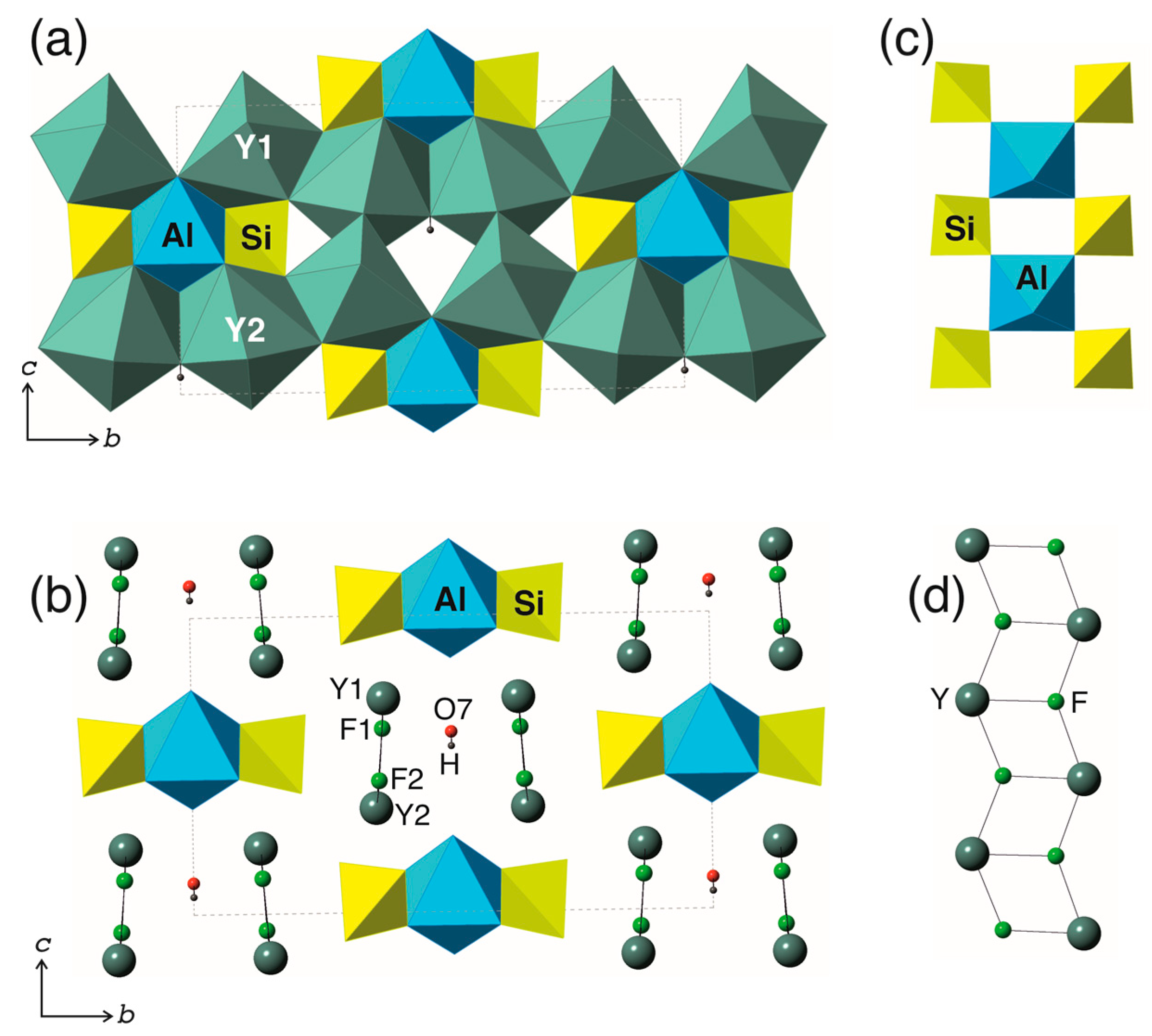 - Malcherek, T.; Schlüter, J.; Husdal, T. Anorthoyttrialite-(Y), Y4(SiO4)(Si3O10), a Natural Representative of B-Type Rare Earth Disilicates. Miner. Mag. 2025, 89, 428–442. [Google Scholar] [CrossRef]