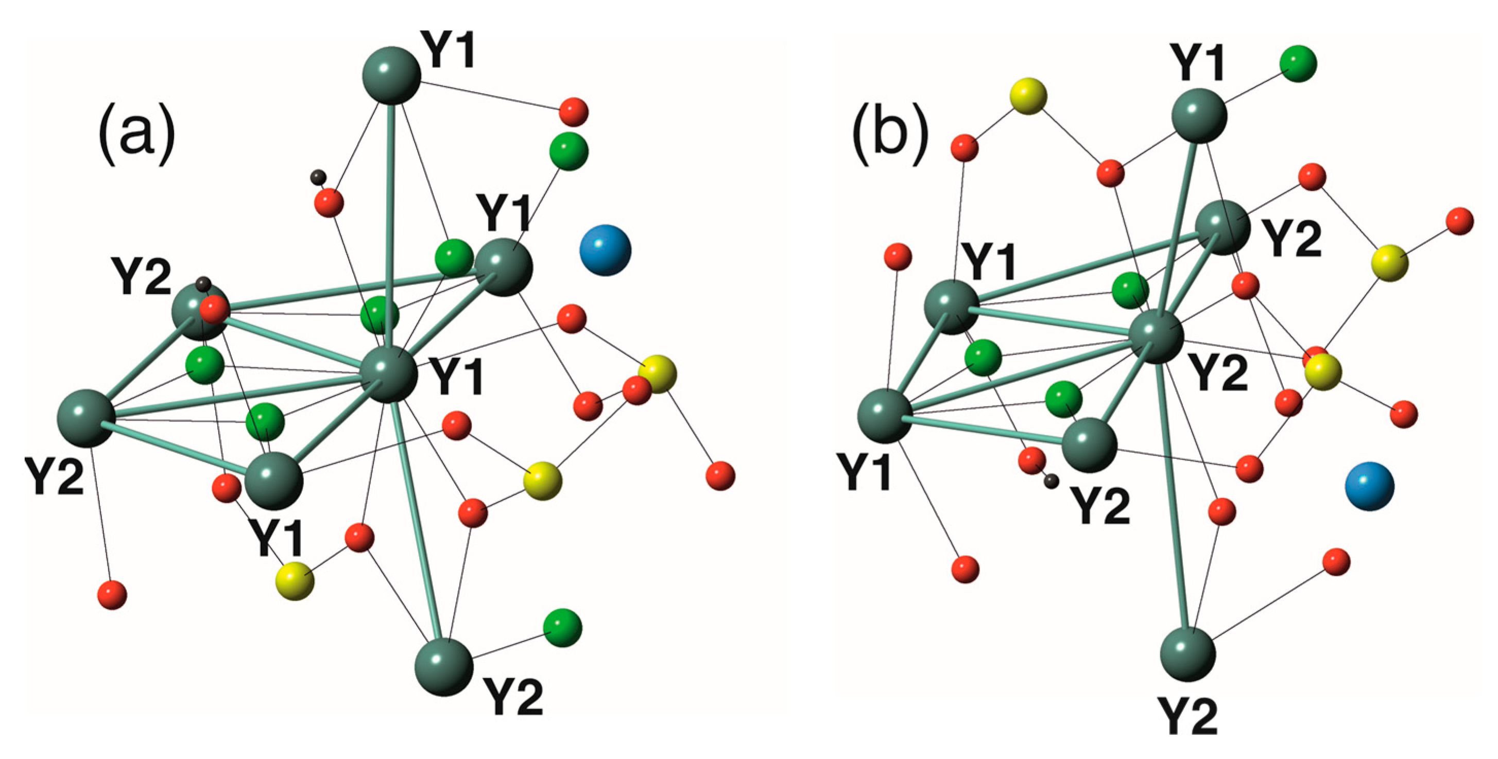 - Schleid, T.; Müller-Bunz, H. Einkristalle von Y3F[Si3O10] Im Thalenit-Typ. Z. Für Anorg. Und Allg. Chem. 1998, 624, 1082–1084. [Google Scholar] [CrossRef]