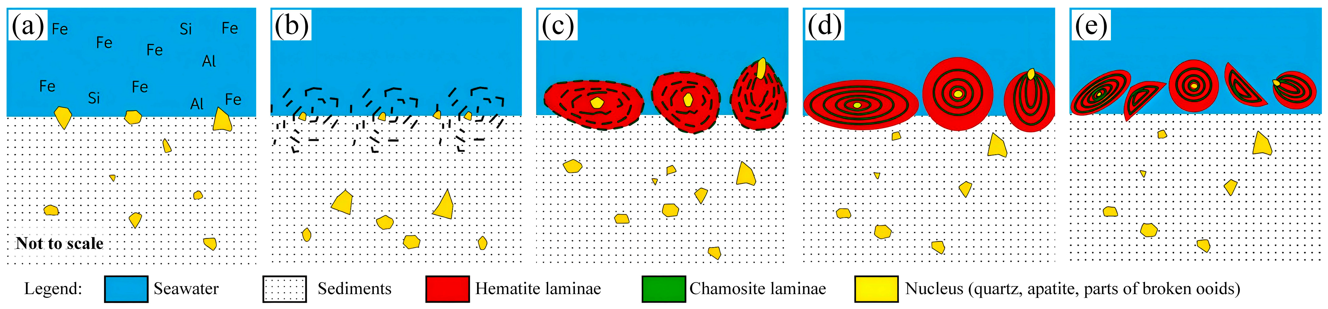 - Quast, K. A review on the characterisation and processing of oolitic iron ores. Miner. Eng. 2018, 126, 89–100. [Google Scholar] [CrossRef]