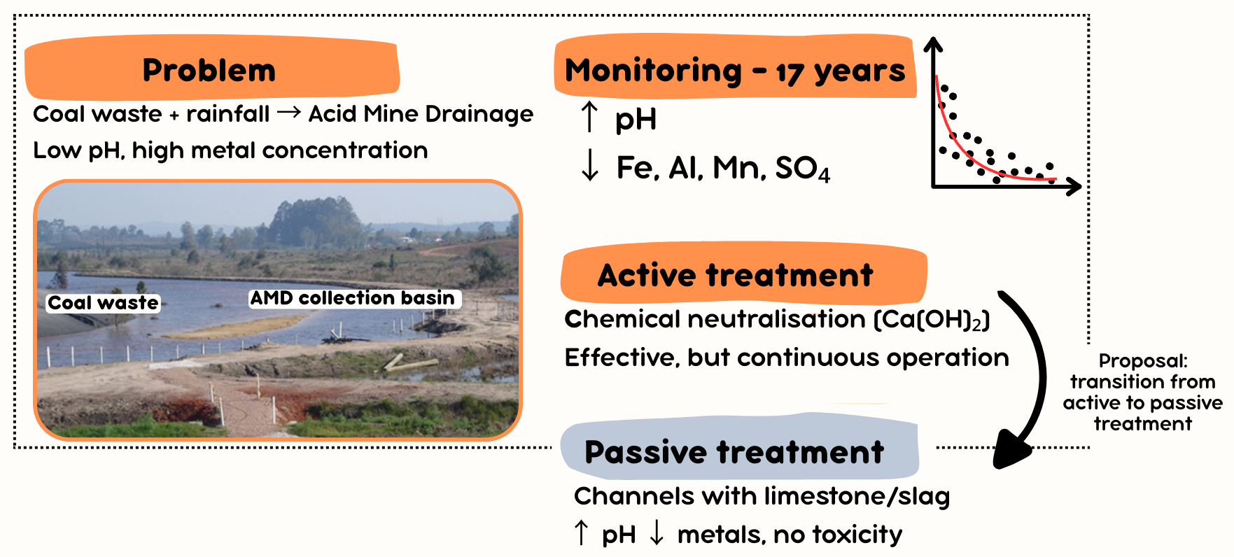 Attenuation of Acid Mine Drainage in a Coal Waste Deposit in Southern Brazil and the Prospect of Transitioning from Active to Passive Treatment