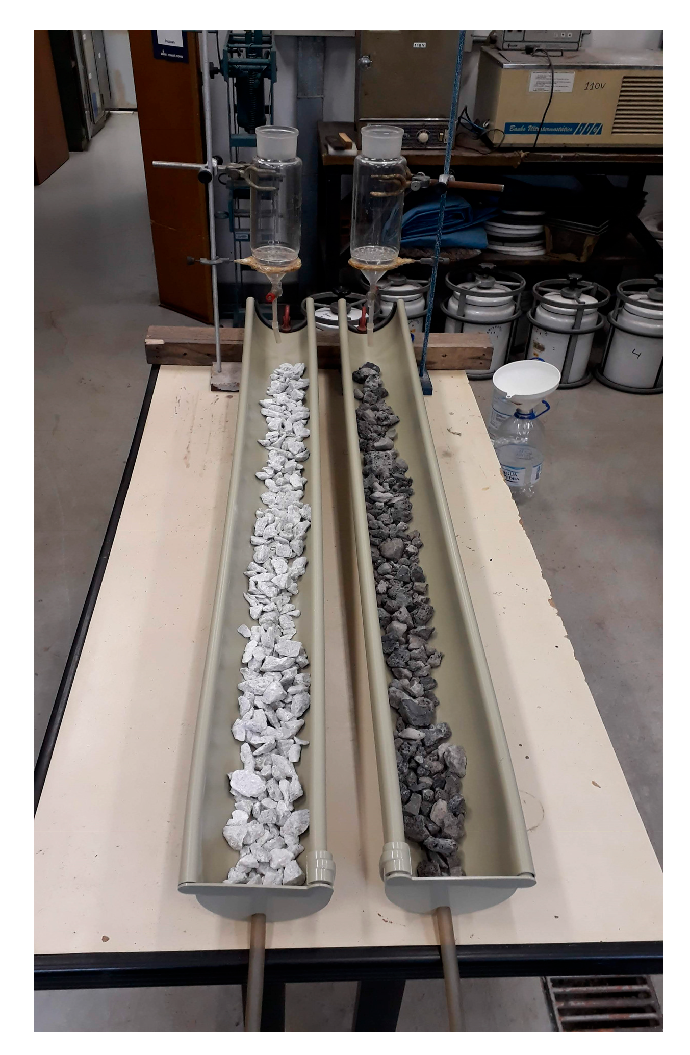 - Ziemkiewicz, P.F. Acid mine drainage treatment with armored limestone in open channels. J. Environ. Qual. 1997, 26, 1017–1024. [Google Scholar] [CrossRef]