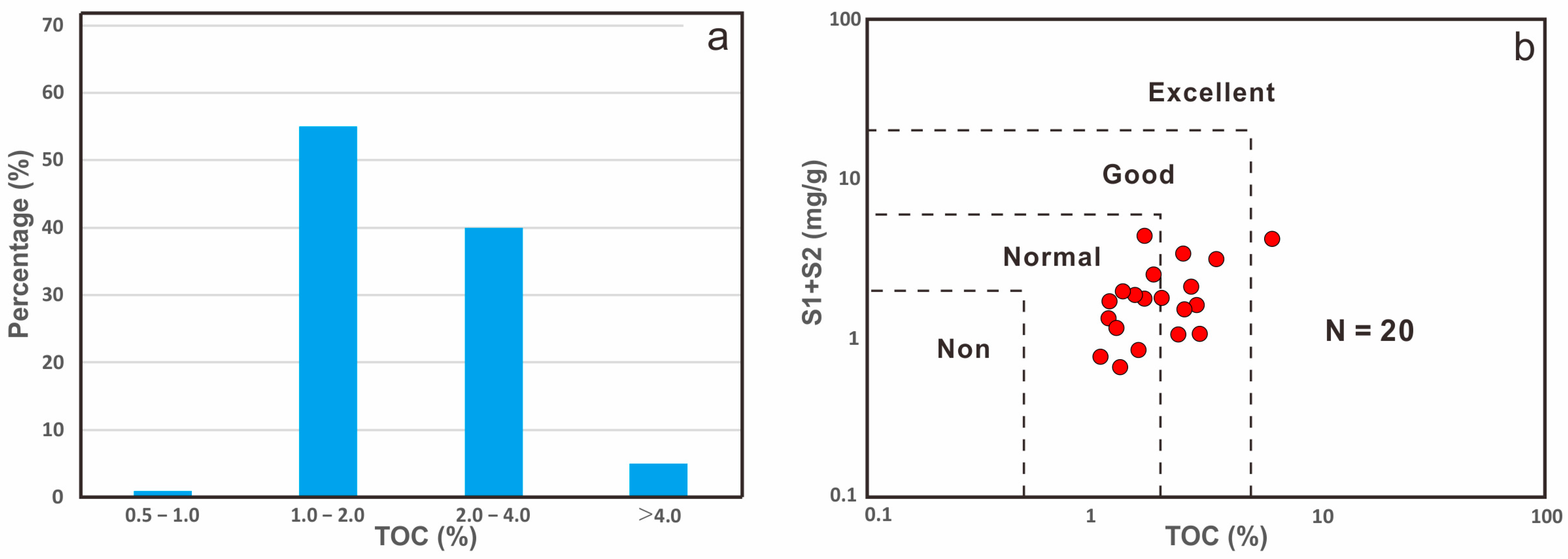 - GB/T19145–2003; Determination of Total Organic Carbon in Sedimentary Rock. Standards Press of China: Beijing, China, 2003.