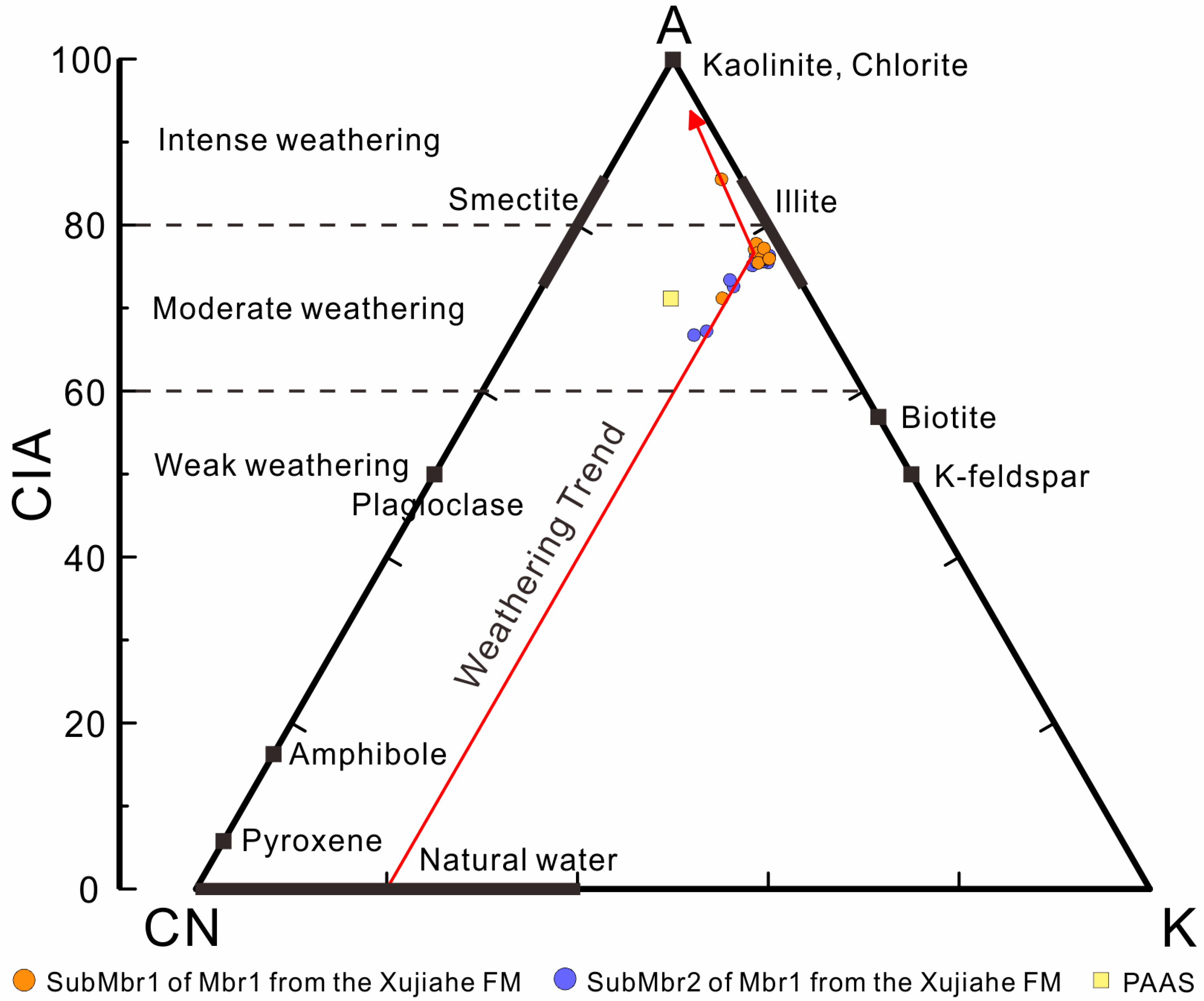 - Xu, X.T.; Shao, L.Y. Limiting factors in utilization of chemical index of alteration of mudstones to quantify the degree of weathering in provenance. J. Palaeogeogr. 2018, 20, 515–522. [Google Scholar]