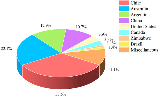 - Wang, Q.; Yuan, C.; Xu, H. Analysis of the global lithium resource distribution and potential. China Min. Mag. 2015, 24, 10–17. [Google Scholar] [CrossRef]