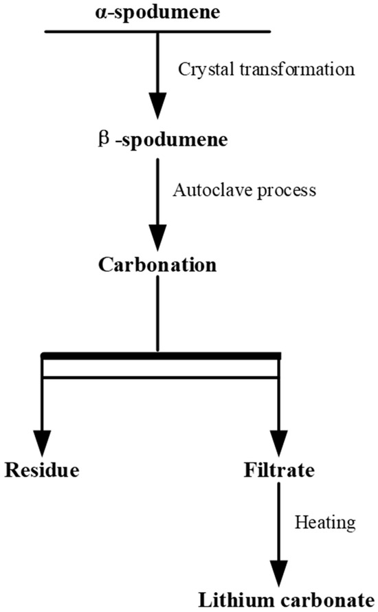 - Chen, Y.; Liao, T.; Chen, B.Z.; Tian, Q.Q. Extraction of Lithium from Spodumene by Sodium Carbonate Autoclave Process. Nonferrous Met. (Extr. Metall.) 2011, 9, 21–23. [Google Scholar]