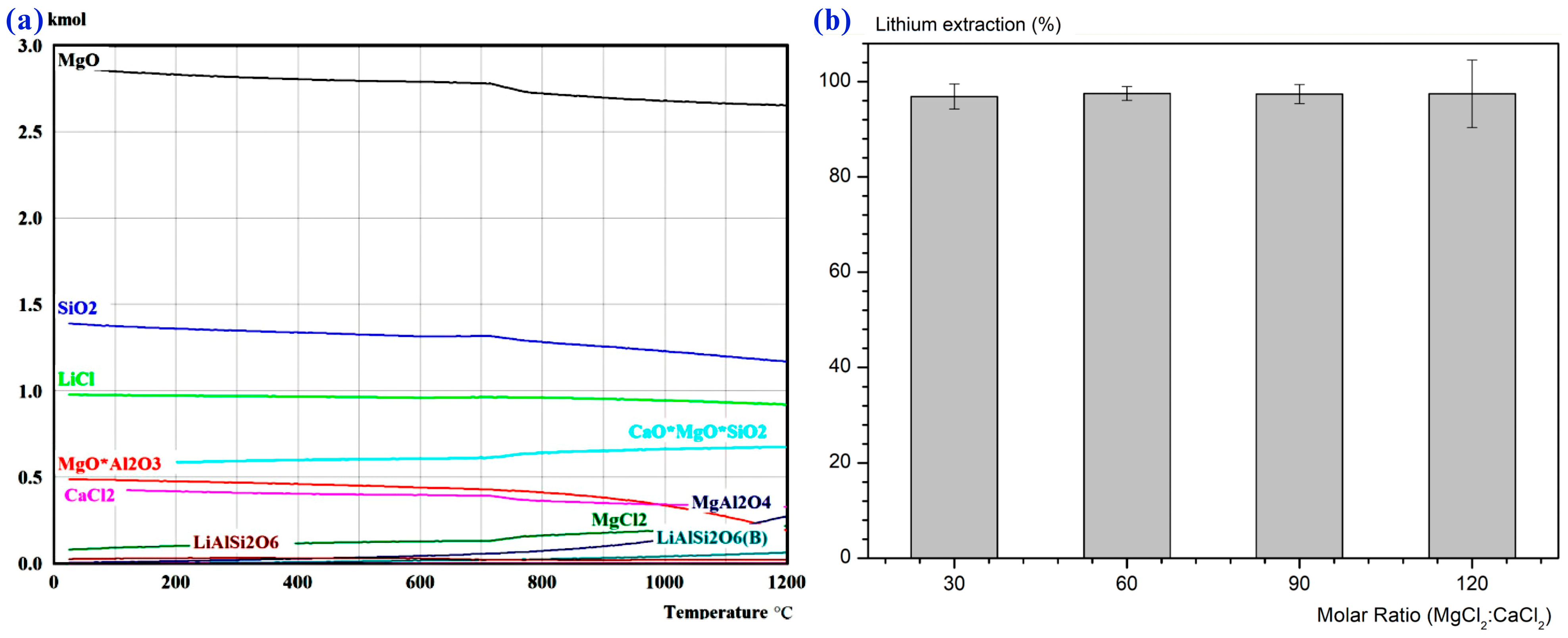 - Barbosa, L.I.; Valente, G.; Orosco, R.P.; González, J.A. Lithium Extraction from β-Spodumene through Chlorination with Chlorine Gas. Miner. Eng. 2014, 56, 29–34. [Google Scholar] [CrossRef]