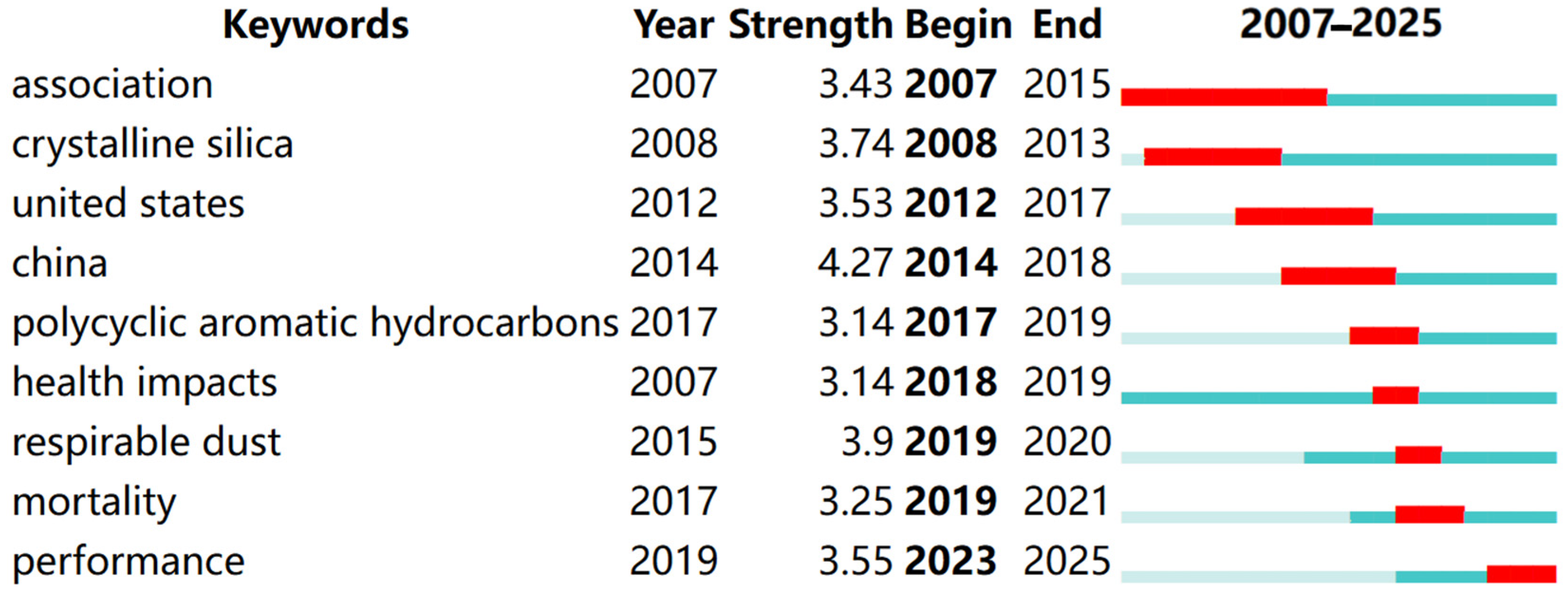 21 | 2019 | USA | Doney BC | Respirable coal mine dust in underground mines, United States, 1982–2017 [25] |