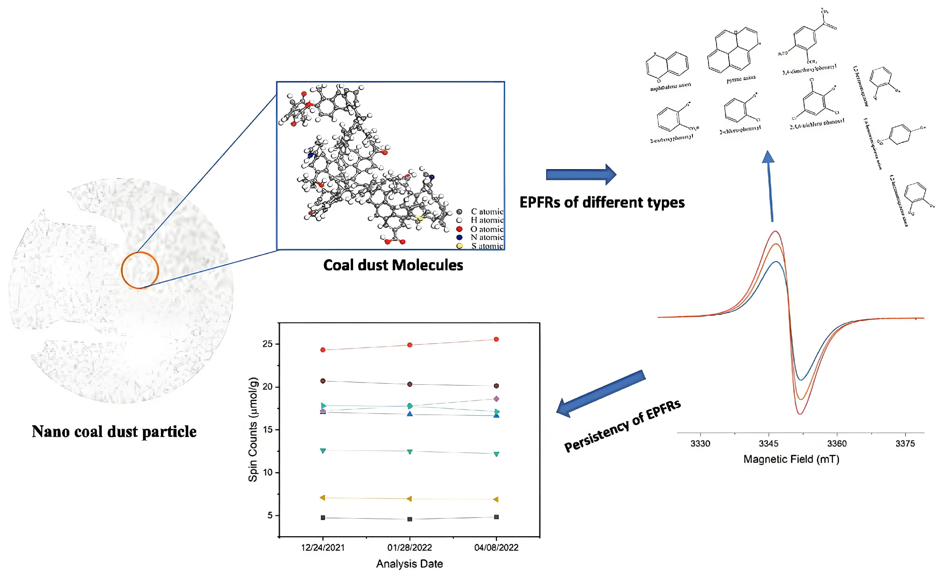 - Azam, S.; Kurashov, V.; Golbeck, J.H.; Bhattacharyya, S.; Zheng, S.; Liu, S. Comparative 6+ Studies of Environmentally Persistent Free Radicals on Nano-Sized Coal Dusts. Sci. Total Environ. 2023, 878, 163163. [Google Scholar] [CrossRef] [PubMed]
