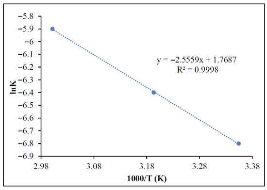 The Arrhenius equation (Equation (2)) is as follows: