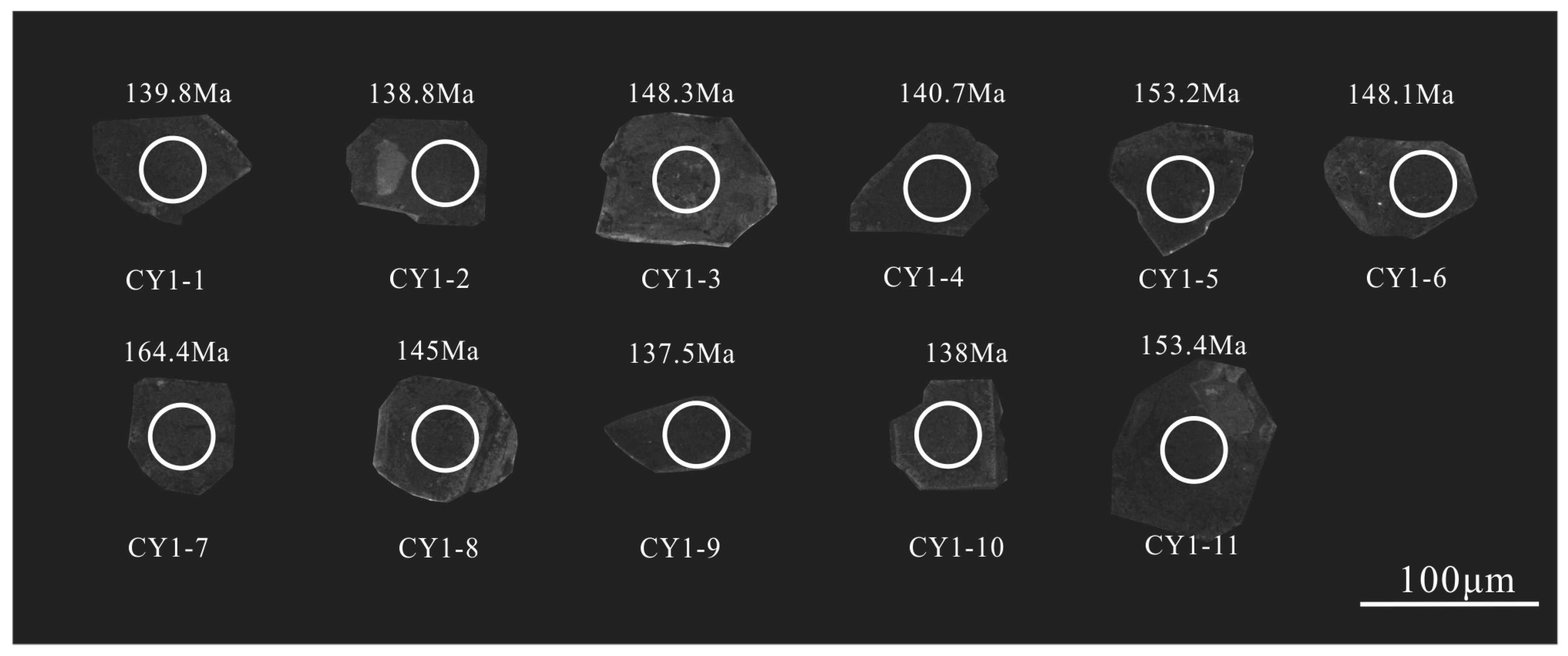 - Ying, J.F.; Zhou, X.H.; Zhang, L.C.; Wang, F. Geochronological Framework of Mesozoic Volcanic Rocks in the Great Xing’an Range, NE China, and Their Geodynamic Implications. J. Asian Earth Sci. 2010, 39, 786–793. [Google Scholar] [CrossRef]