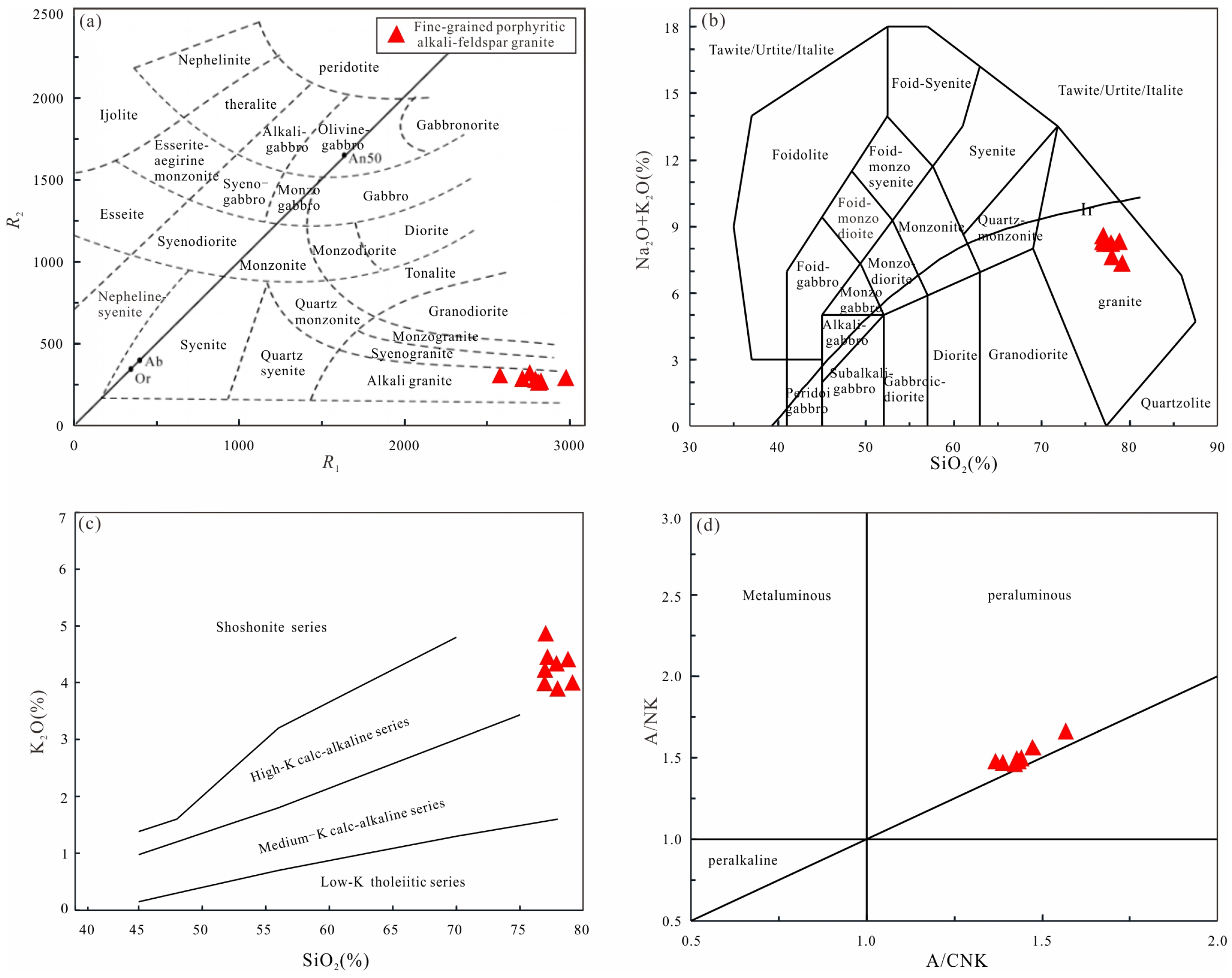 - De La Roche, H.; Leterrier, J.; Grandclaude, P.; Marchal, M. A Classification of Volcanic and Plutonic Rocks Using R1-R2 Diagram and Major-Element Analyses—Its Relationships with Current Nomenclature. Chem. Geol. 1980, 29, 183–210. [Google Scholar] [CrossRef]