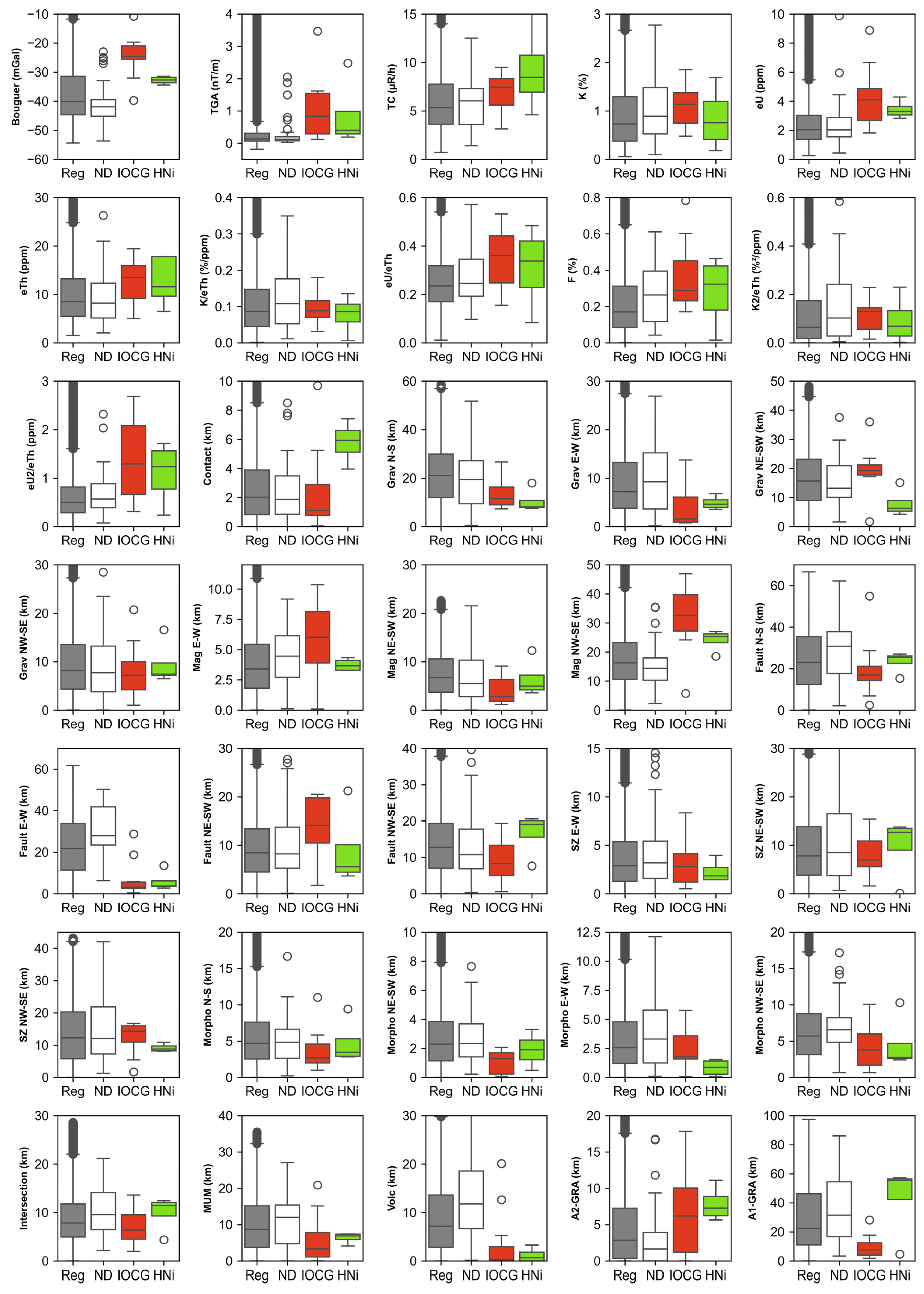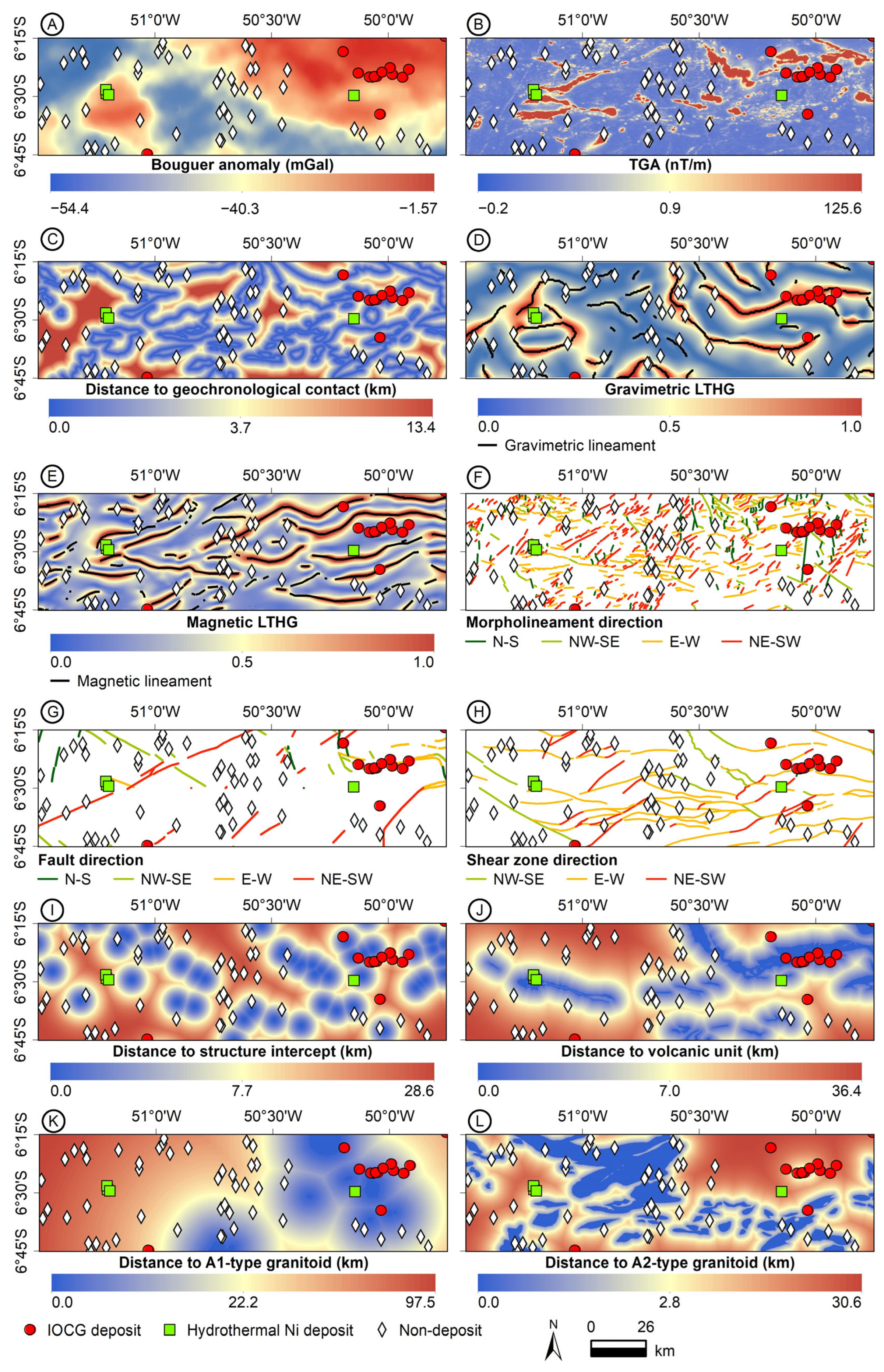 Mappable Targeting Criteria | Contacts between Mesoarchean, Neoarchean, Paleoproterozoic units (geochronological contacts), occurrences of volcanic, granitic, and mafic–ultramafic rocks | Structures mapped by gravity and magnetic lineaments | Morpholineament, faults and shear zone | Radiometric channels, ratios and magnetic highs |