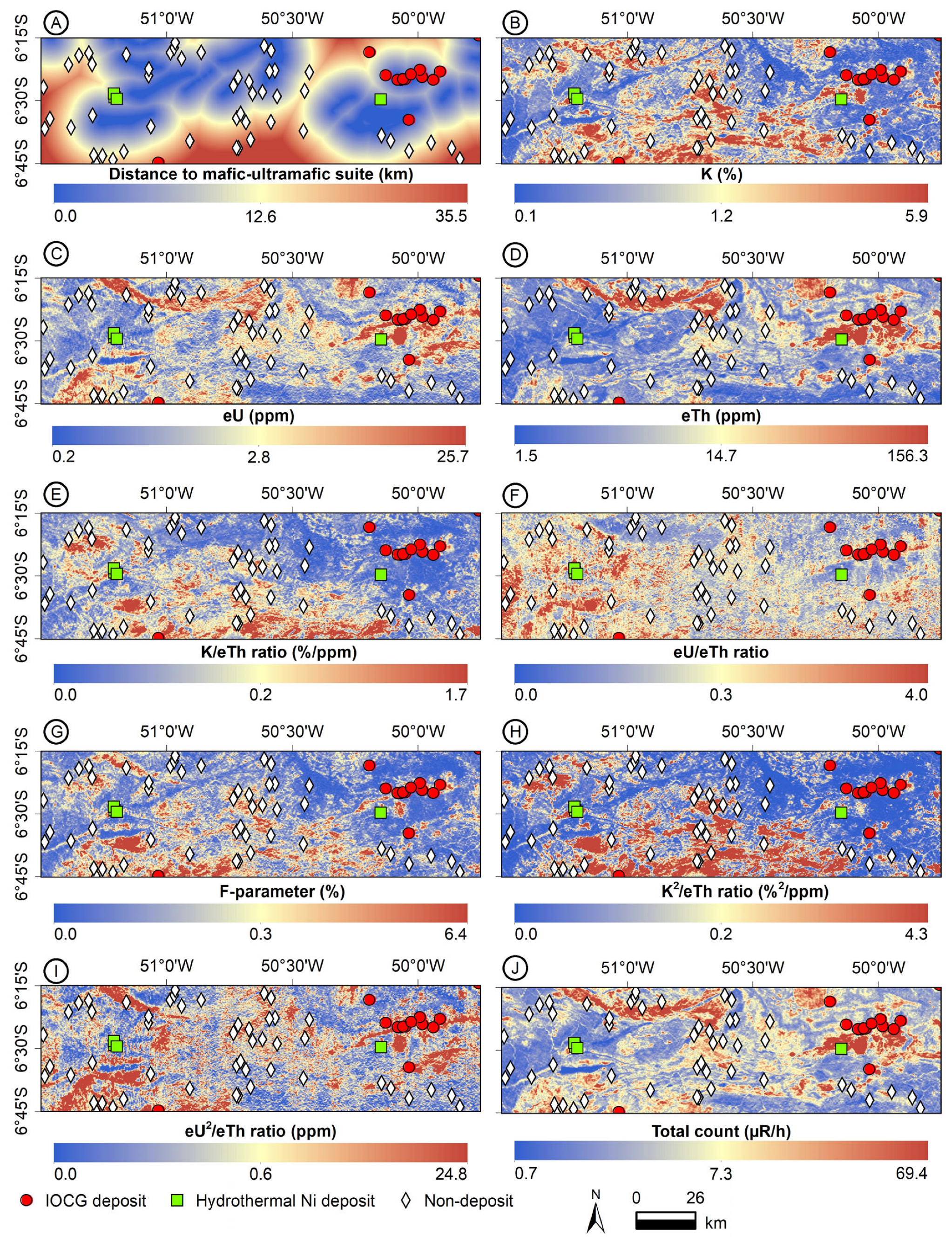 - Costa, I.S.L.; de Serafim, I.C.C.O.; Tavares, F.M.; de Polo, H.J.O. Uranium anomalies detection through Random Forest regression. Explor. Geophys. 2020, 51, 555–569. [Google Scholar] [CrossRef]