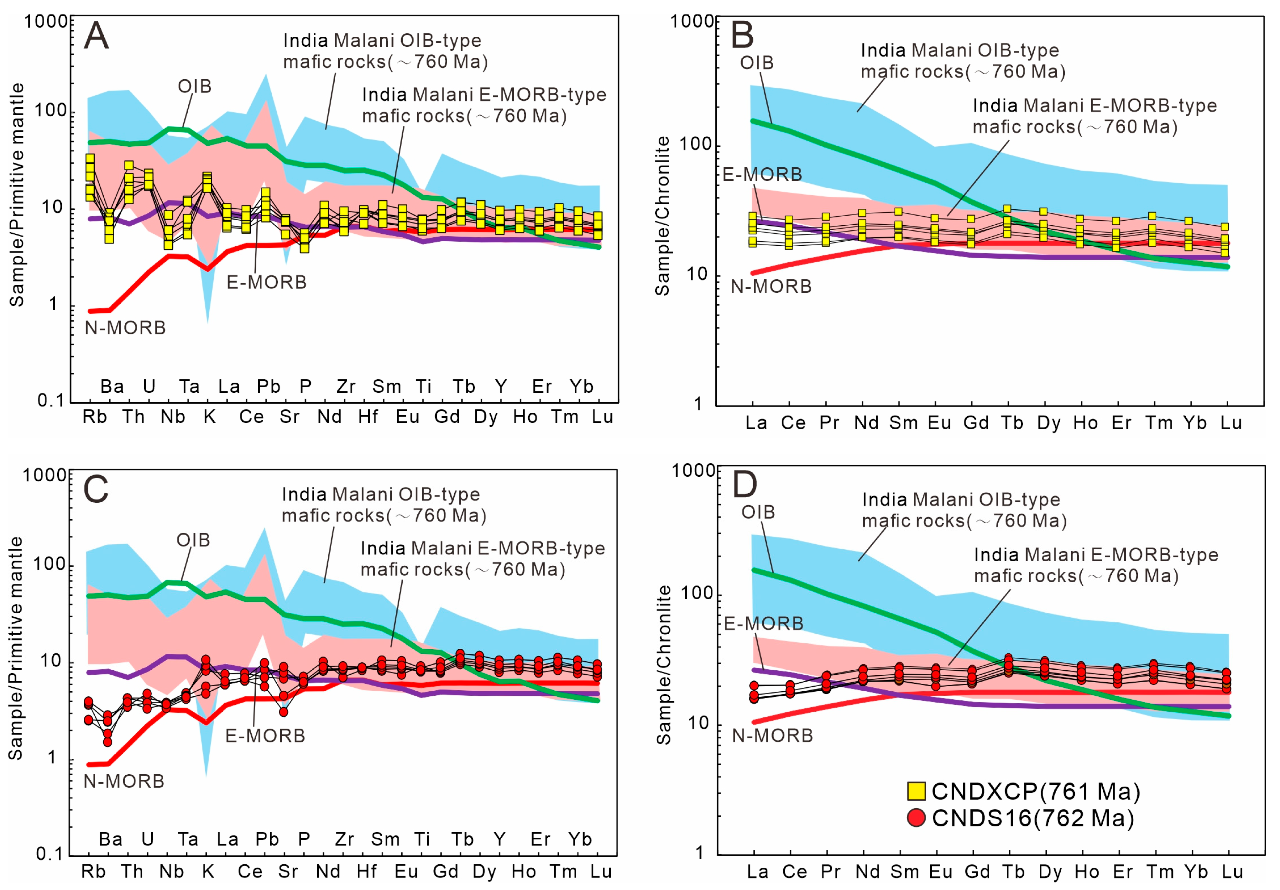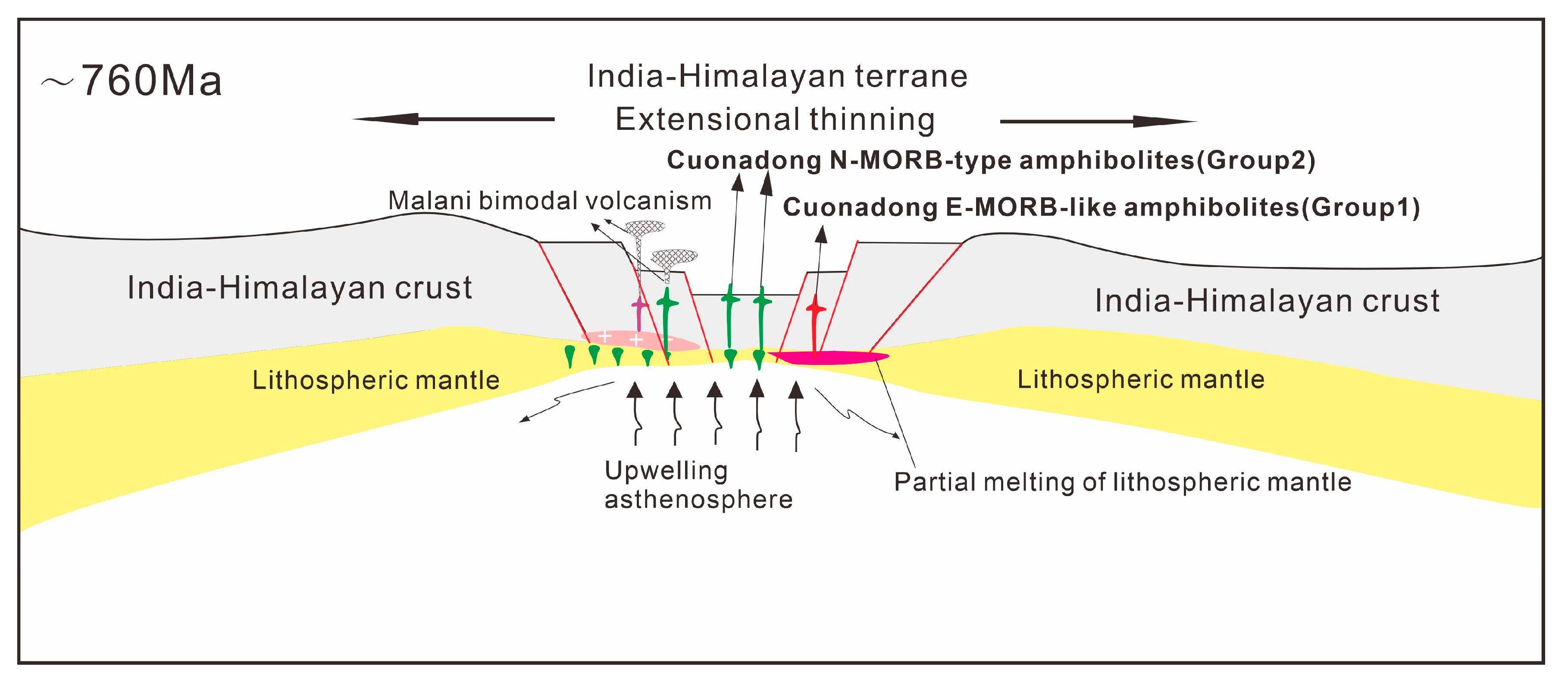 - The ca. 760 Ma mafic rocks in the eastern Himalayan orogen are interpreted as products of an intracontinental rift setting. These findings support a tectonic transition of the Indian–Himalayan terrane from an arc to a back-arc and finally to a continental rift between the Early and Middle Neoproterozoic.