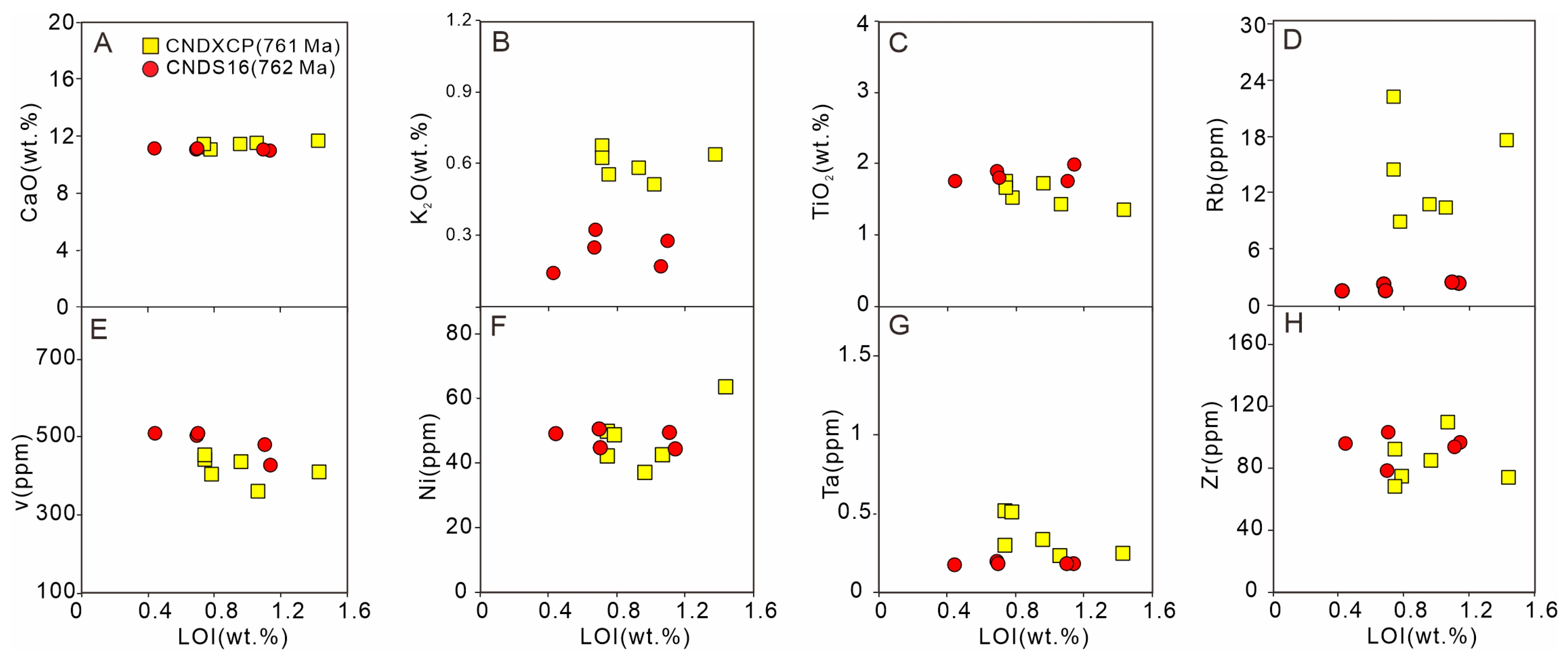 - These mafic rocks can be classified into two geochemically distinct groups. Group 1 is enriched in incompatible elements and exhibits relatively higher initial (87Sr/86Sr)ᵢ ratios, lower positive whole-rock εNd(t) values, and lower positive zircon εHf(t) values, consistent with an E-MORB-like affinity and suggesting a lithospheric mantle source. In contrast, Group 2 shows lower initial (87Sr/86Sr)ᵢ ratios and higher positive whole-rock εNd(t) and zircon εHf(t) values, consistent with an N-MORB-like affinity and indicating an origin involving interaction between the lithospheric mantle and depleted asthenospheric mantle.