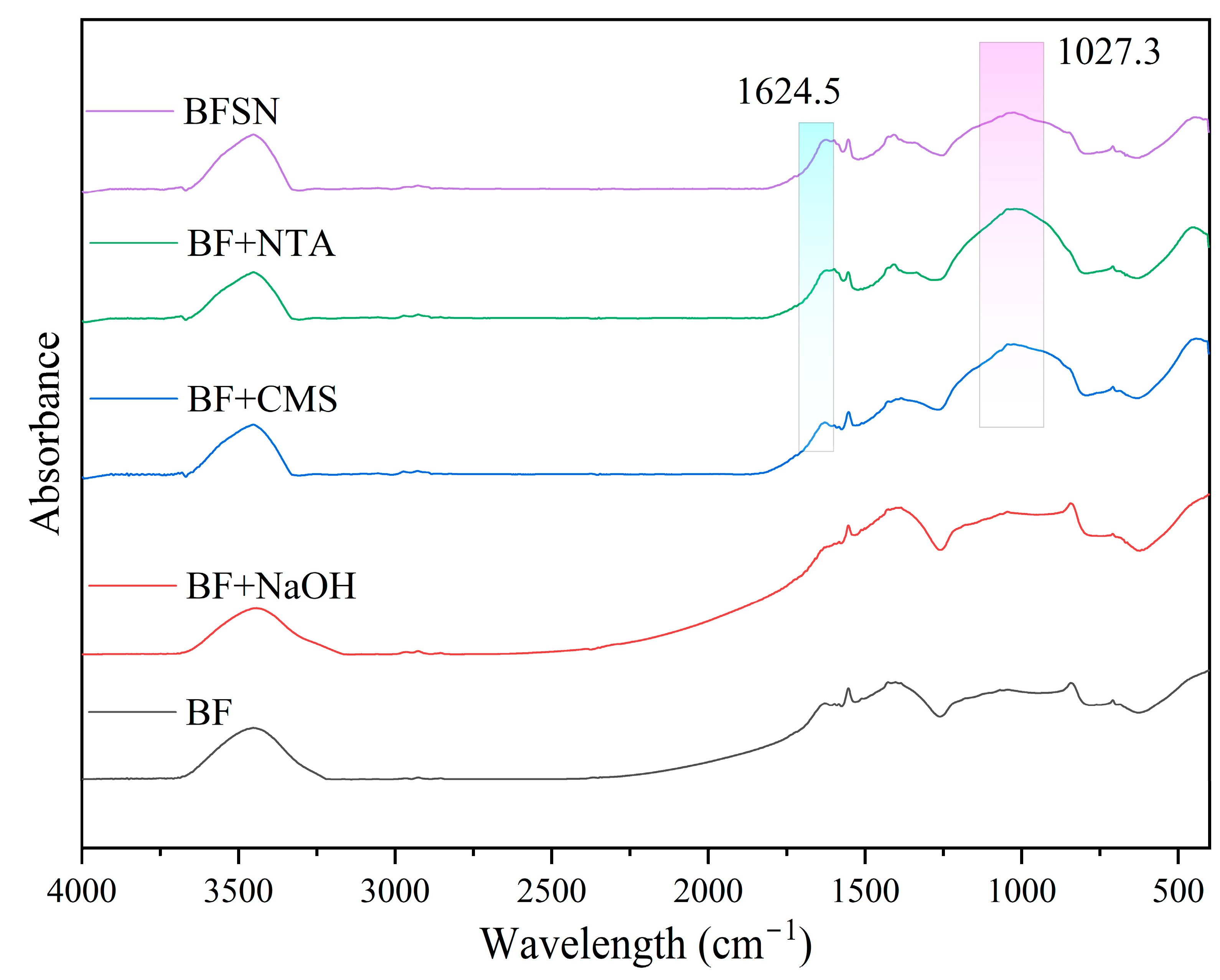 BFSN | 6.5 | 80.25 | 105.38 | Synergistic effects of chelation and ion exchange | This study |