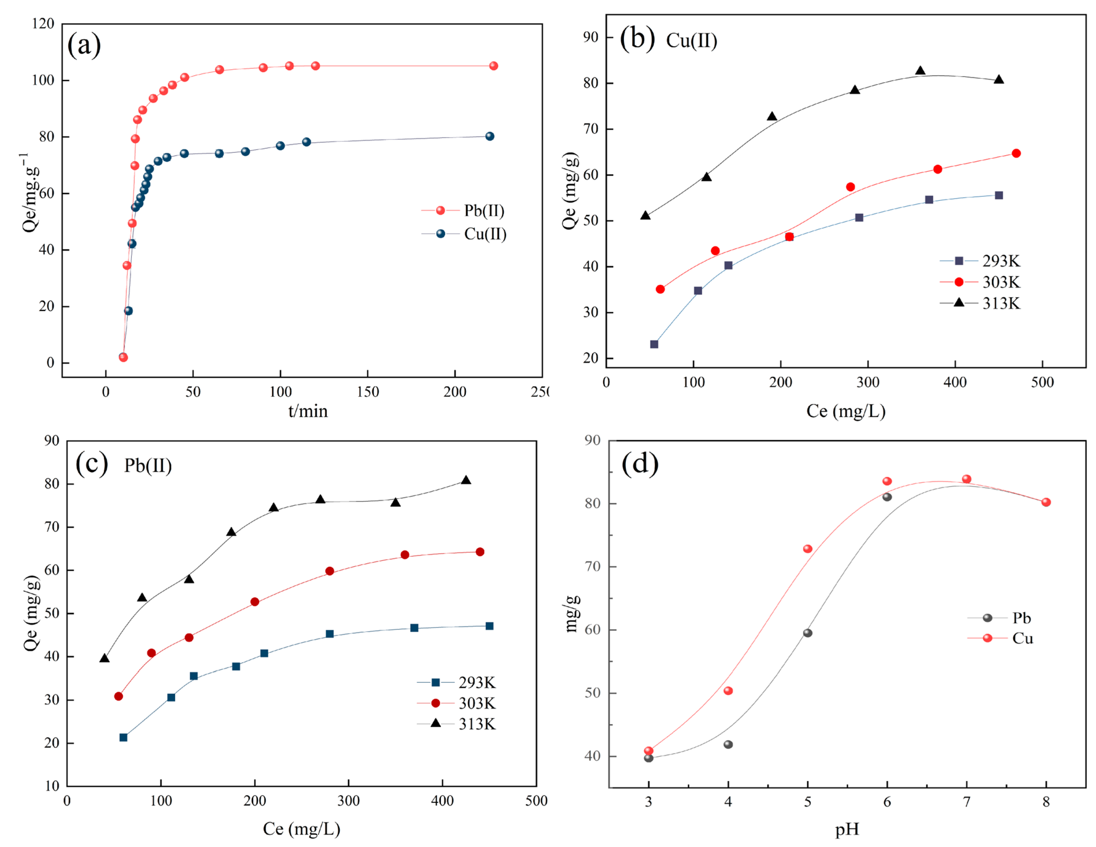 Pb(II) | 105.38 | 104.79 | 0.0825 | 0.99 | 95.45 | 0.00023 | 0.84 |