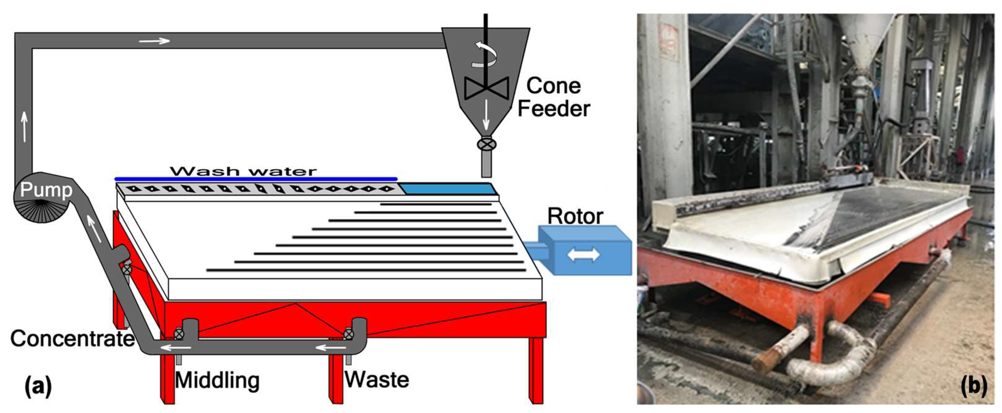 3.2. Processing of the Tailings with a Custom-Designed Shaking Table
