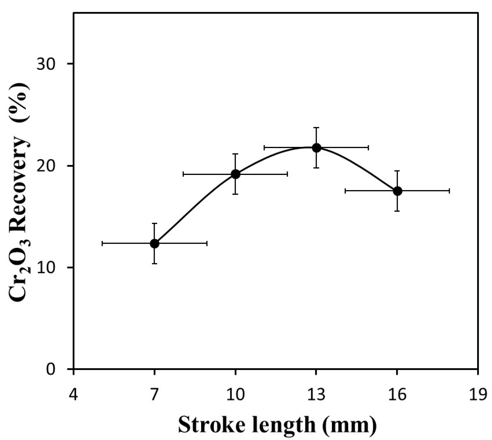 3.2.2. Effect of Stroke Length on Chromite Recovery