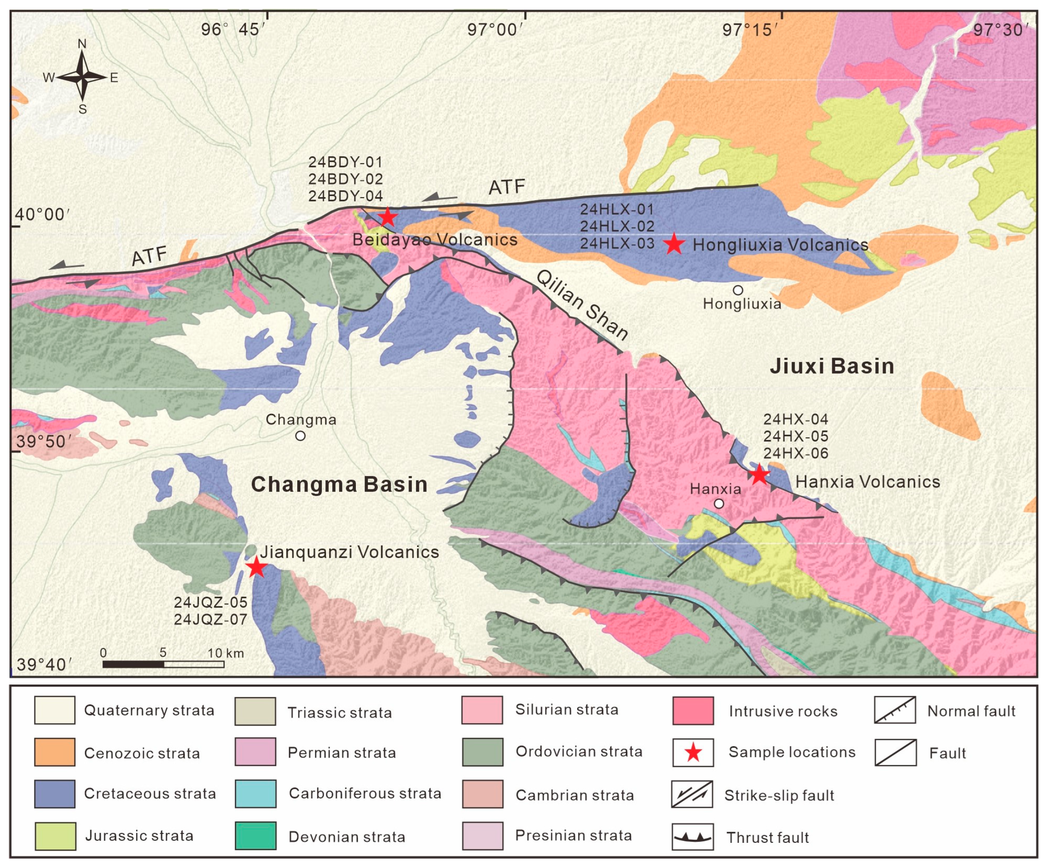 - Based on a comprehensive review of regional geological evidence, we propose that the eastern Altyn Tagh Fault volcanic rocks formed in response to asthenospheric mantle upwelling. This reveals an intracontinental extensional tectonic setting, implying intense strike-slip activity along the eastern Altyn Tagh Fault segment during the Cretaceous.