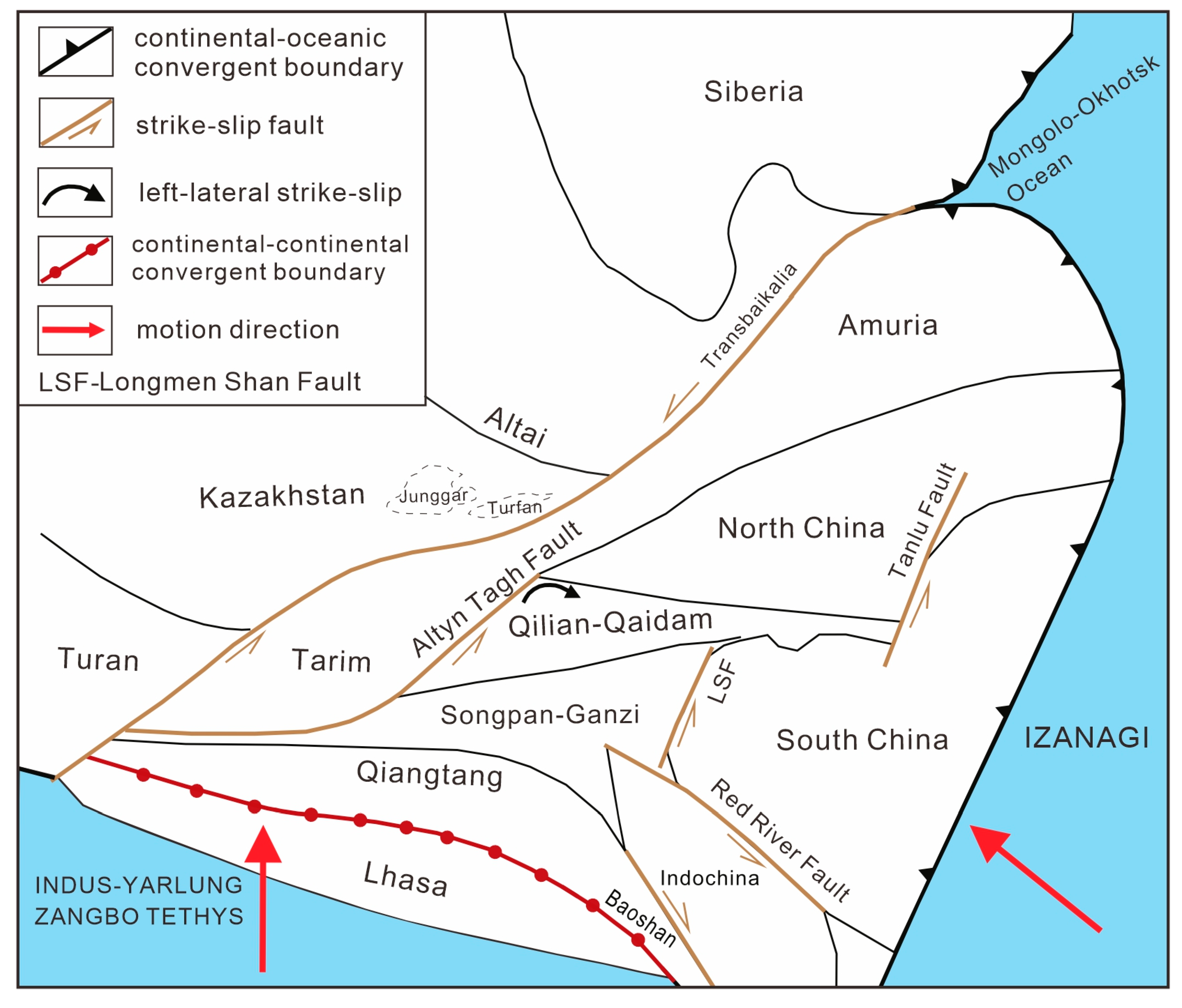 - Yin, A. Cenozoic tectonic evolution of Asia: A preliminary synthesis. Tectonophysics 2010, 488, 293–325. [Google Scholar] [CrossRef]