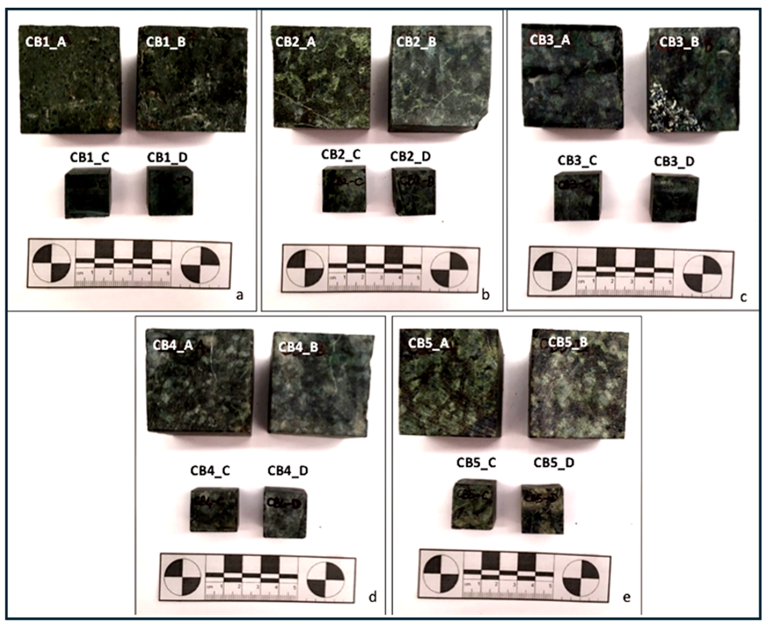 - Pereira, D.; Yenes, M.; Sánche, J.A.B.; Peinado Moreno, M.M. Characterization of serpentinites to define their appropriate use as dimension stone. Geol. Soc. Spec. Pub. 2007, 271, 55–62. [Google Scholar] [CrossRef]