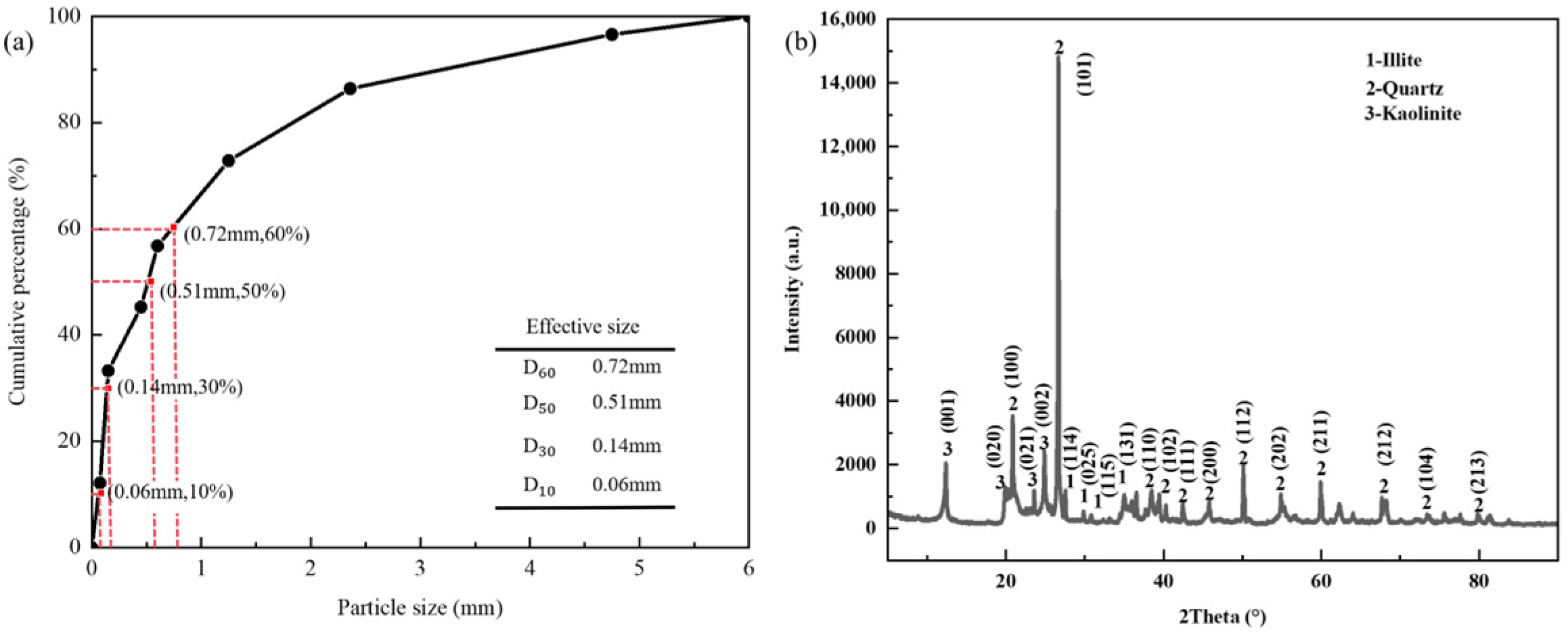 φ. The main migration ability sequence of the three minerals is illite (mainly migrating three layers) > kaolinite (mainly migrating two layers) > quartz (partly migrating one layer). Illite is predominantly deposited in the lower part, kaolinite mainly settles in the lower middle part, and quartz is primarily found in the upper middle part. It is known from