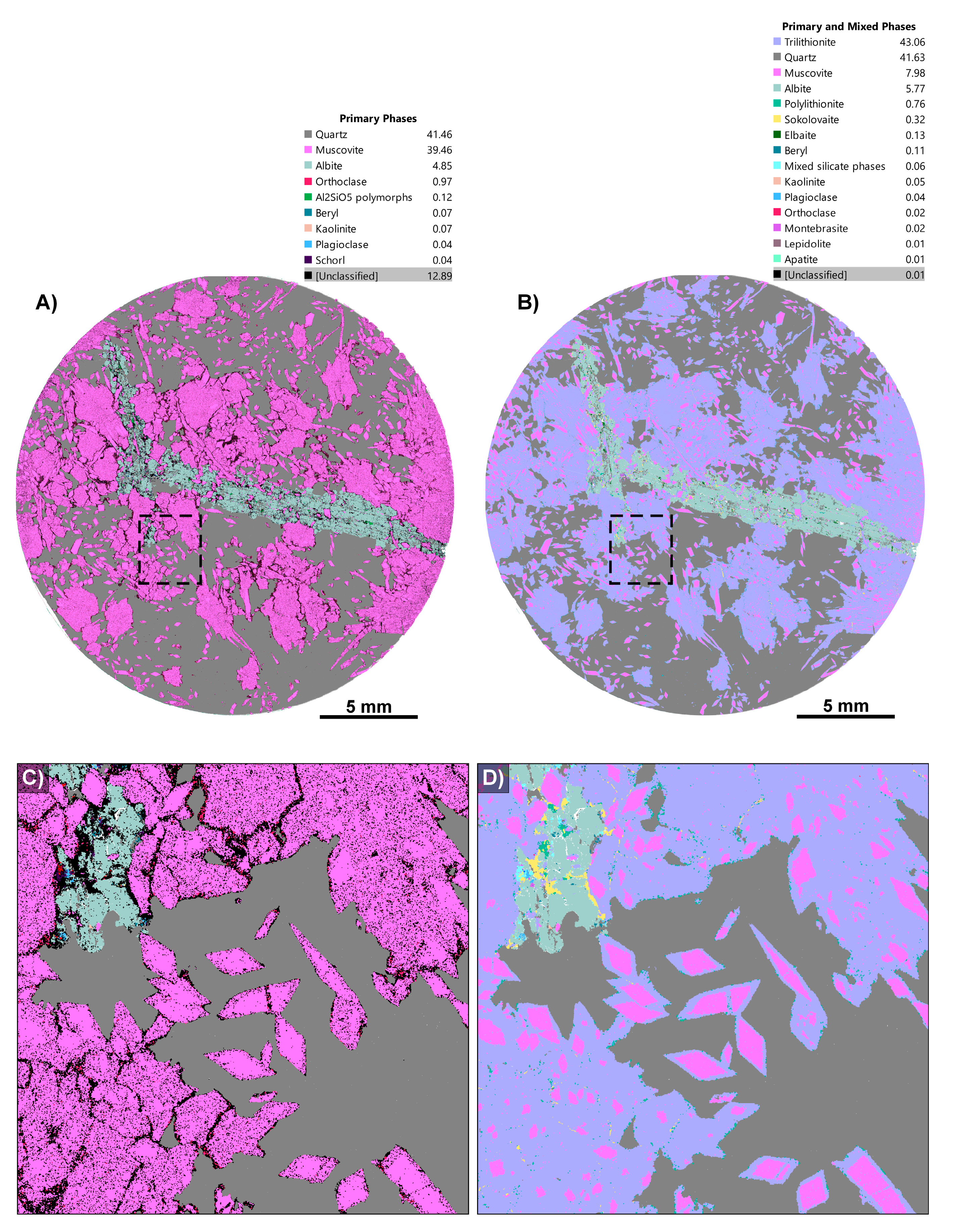 - Low-count X-ray spectra were collected, resulting in no classification, as with misclassified phases.