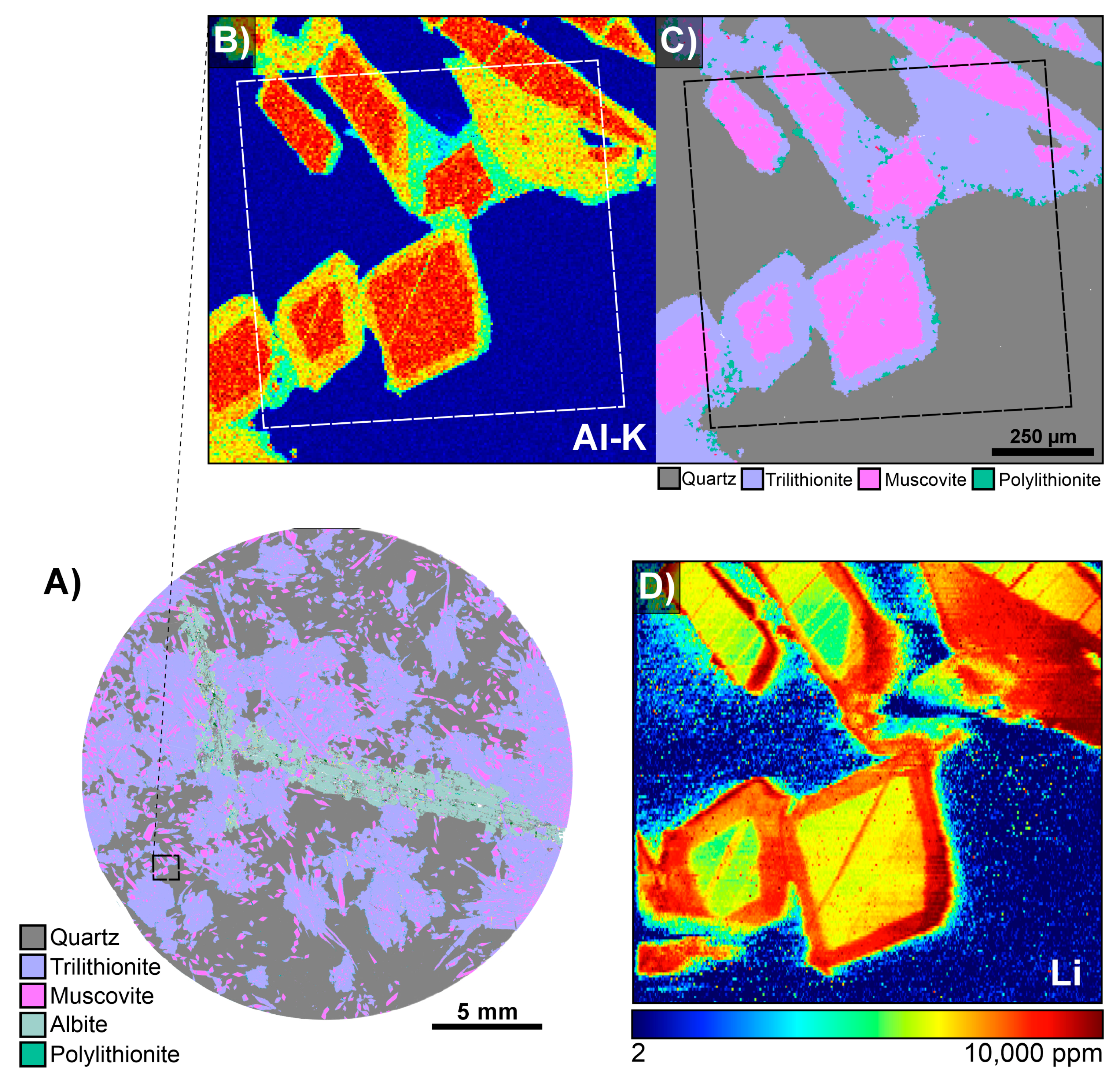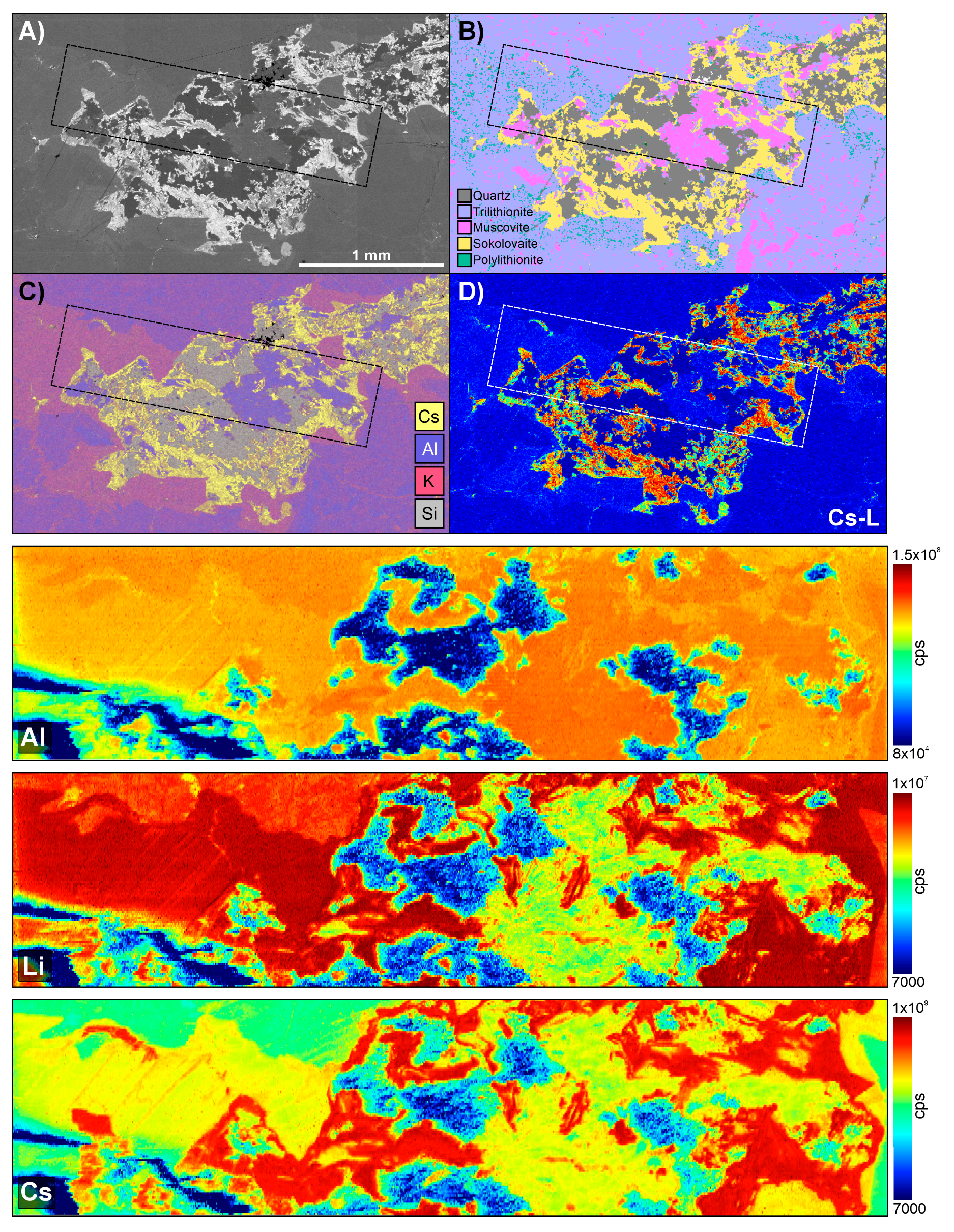 - Pautov, L.; Agakhanov, A.; Bekenova, G. Sokolovaite CsLi2AlSi4O10F2—A new mineral species of the mica group. New Data Miner. 2006, 41, 5–13. [Google Scholar]
