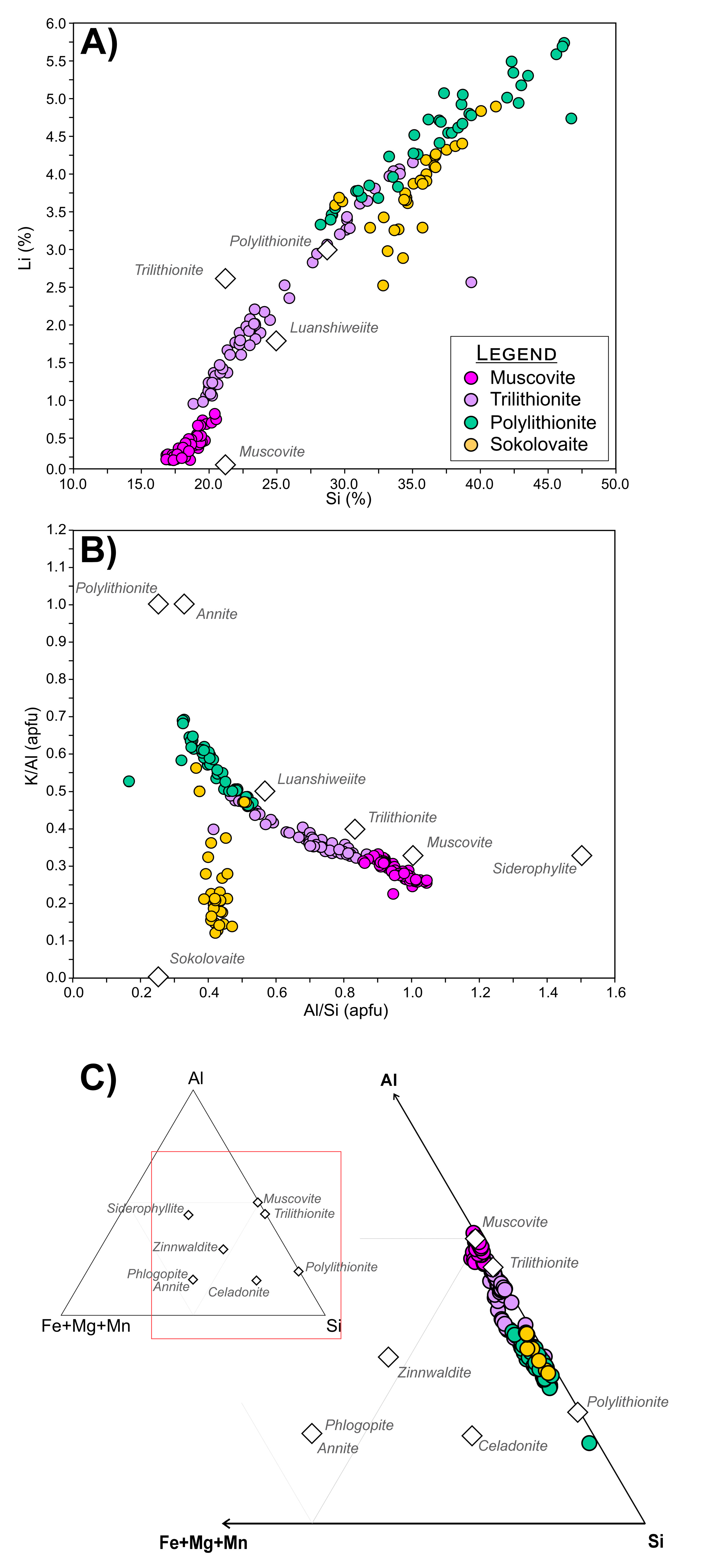 | Species | K p.f.u. | Al p.f.u. | Si p.f.u. | K/Al | Al/Si |