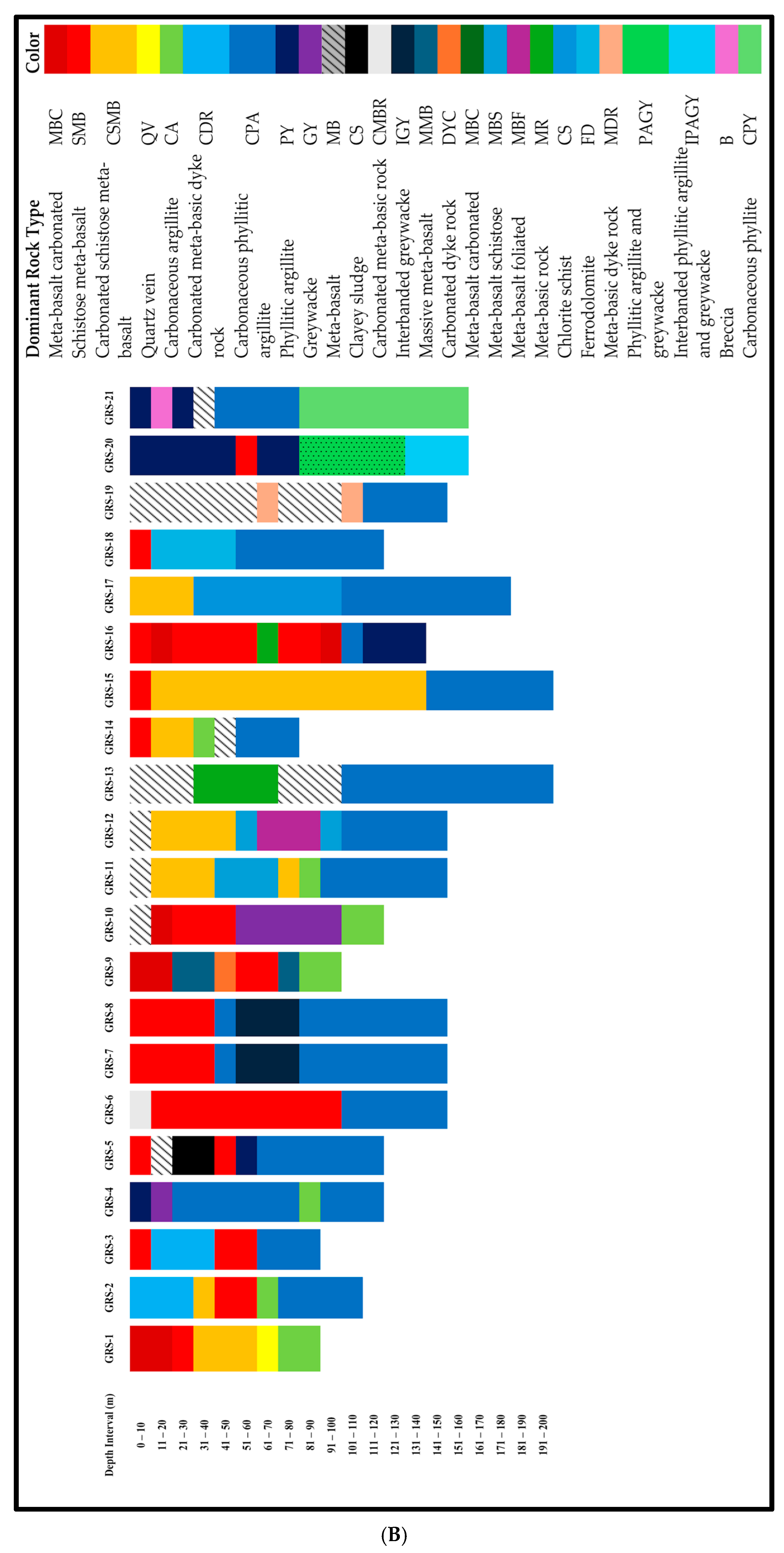 - Chadwick, B.; Vasudeva, V.; Swaminathan, J. Statigraphy and structure of late Archaean Dharwar volcanic and sedimentary rocks and their base- ments in a part of the Shimoga basin east of Badravathi, Karnataka. J. Geol. Soc. India 1988, 32, 1–19. [Google Scholar] [CrossRef]