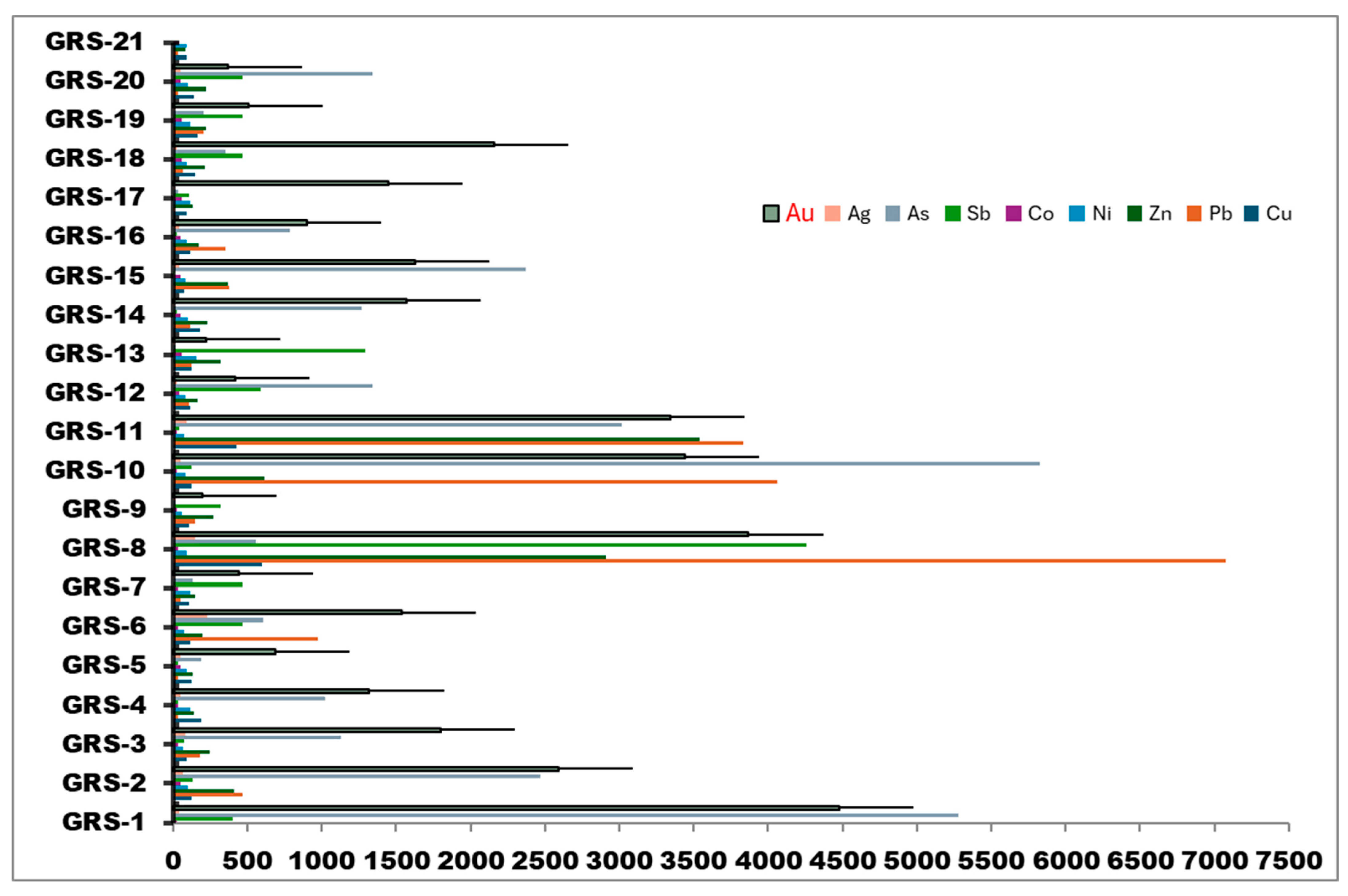 - Raju, P.V.S.; Charan, S.N.; Subba Rao, D.V.; Uday Raj, B.; Naqvi, S.M. Nature of shear zone hosted epigenetic gold mineralisation in BIF of Chitradurga Schist Belt, Karnataka. J. Geol. Soc. India 2006, 68, 577–581. [Google Scholar]