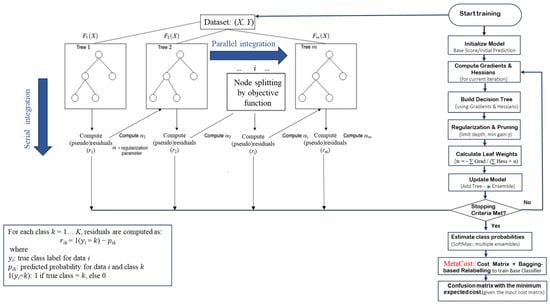 The workflow in Figure 1 enables XGBoost to build a robust classifier by sequentially adding trees that correct the errors of the previous ones, optimizing the model’s performance through gradient boosting and regularization techniques. The implementation details are provided next.