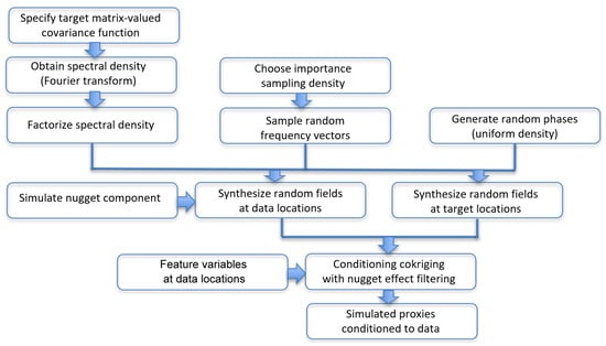 - Emery, X.; Arroyo, D.; Porcu, E. An improved spectral turning-bands algorithm for simulating stationary vector Gaussian random fields. Stoch. Environ. Res. Risk Assess. 2016, 30, 1863–1873. [Google Scholar] [CrossRef]