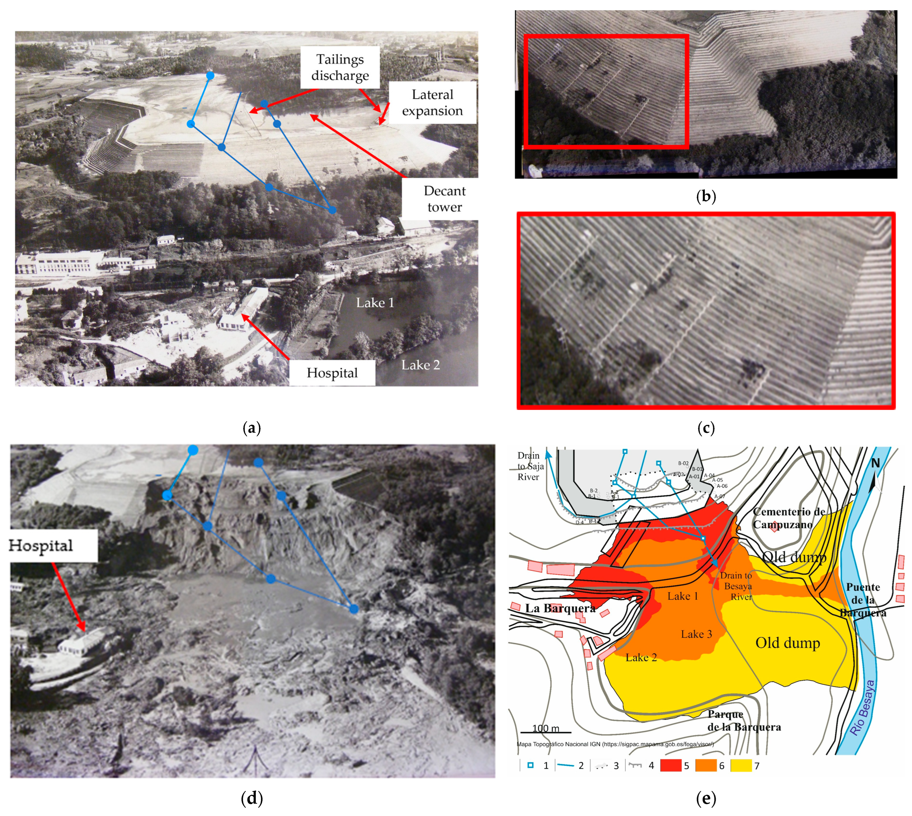 - Fernandez-Naranjo, F.J.; Rodriguez, V.; Rodriguez, R.; Alberruche, M.E.; Arranz, J.C.; Vadillo, L. Analysis of tailing dam failure based on historical documents: The case study of ’la luciana’, Spain. In Proceedings of the First JTC1 Workshop on Advances in Landslide Understanding, Barcelona, Spain, 24–26 May 2017; pp. 1–4. [Google Scholar]
