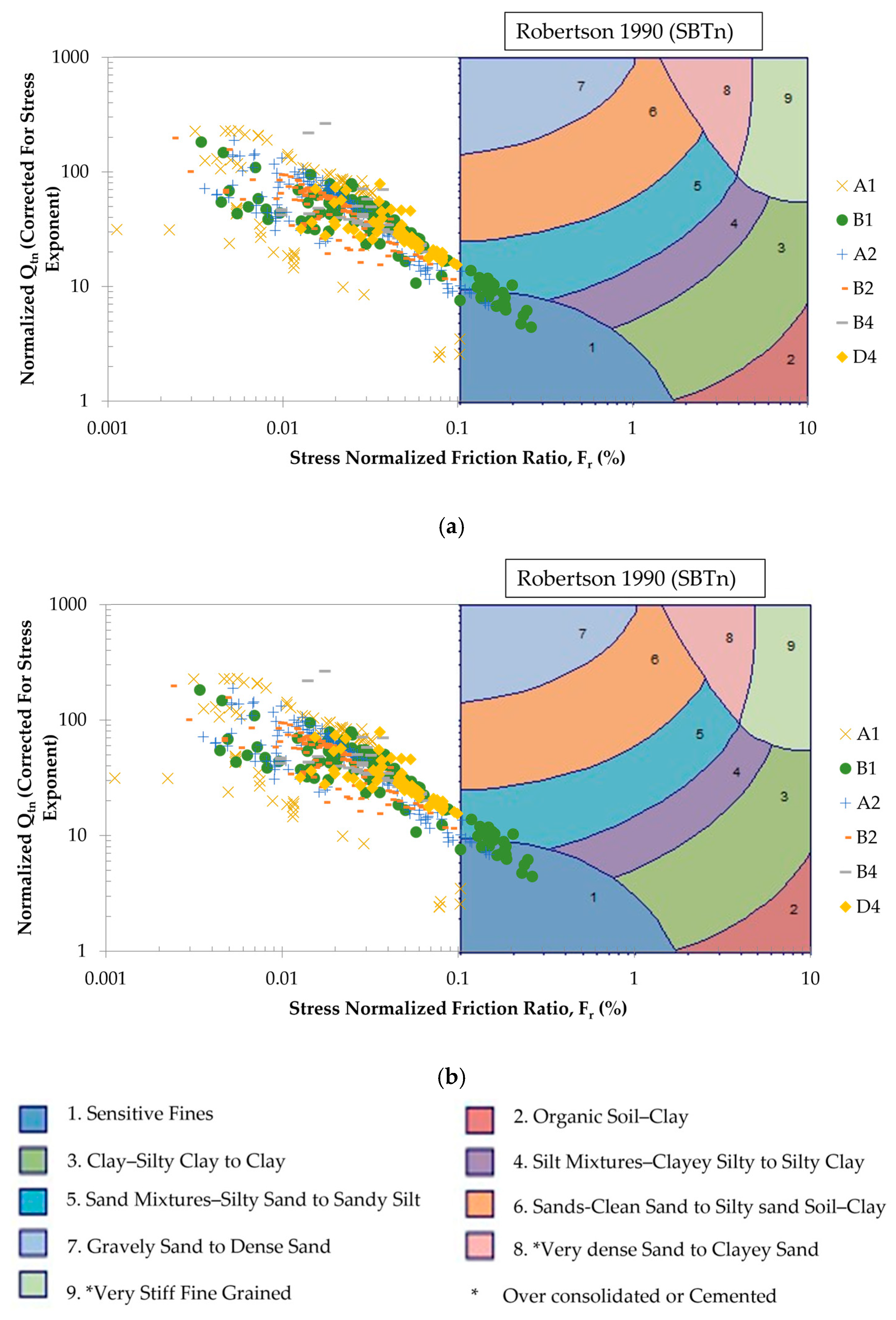 - Robertson, P.K. Soil classification using the cone penetration test. Can. Geotech. J. 1990, 27, 151–158. [Google Scholar] [CrossRef]