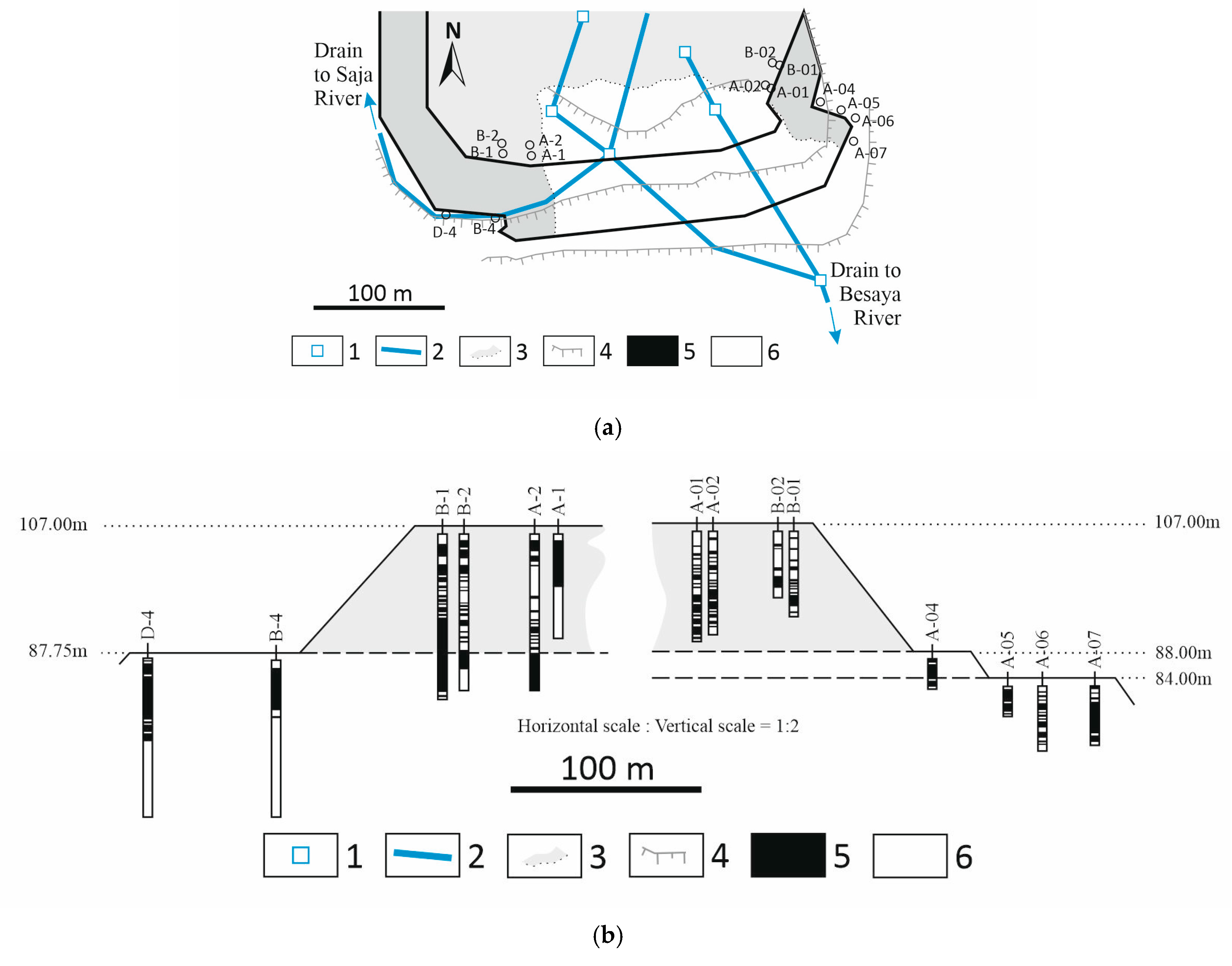 - Fernandez-Naranjo, F.J.; Rodriguez, V.; Rodríguez, R.; Alberruche, M.E.; Arranz, J.C.; Vadillo, L. Liquefaction susceptibility assessment and study of “la luciana” tailings dam fault (Spain, 1960) based on historical documents. Dyna 2015, 82, 189–198. Available online: https://api.semanticscholar.org/CorpusID:110437056 (accessed on 23 November 2024). (In Spanish) [CrossRef]