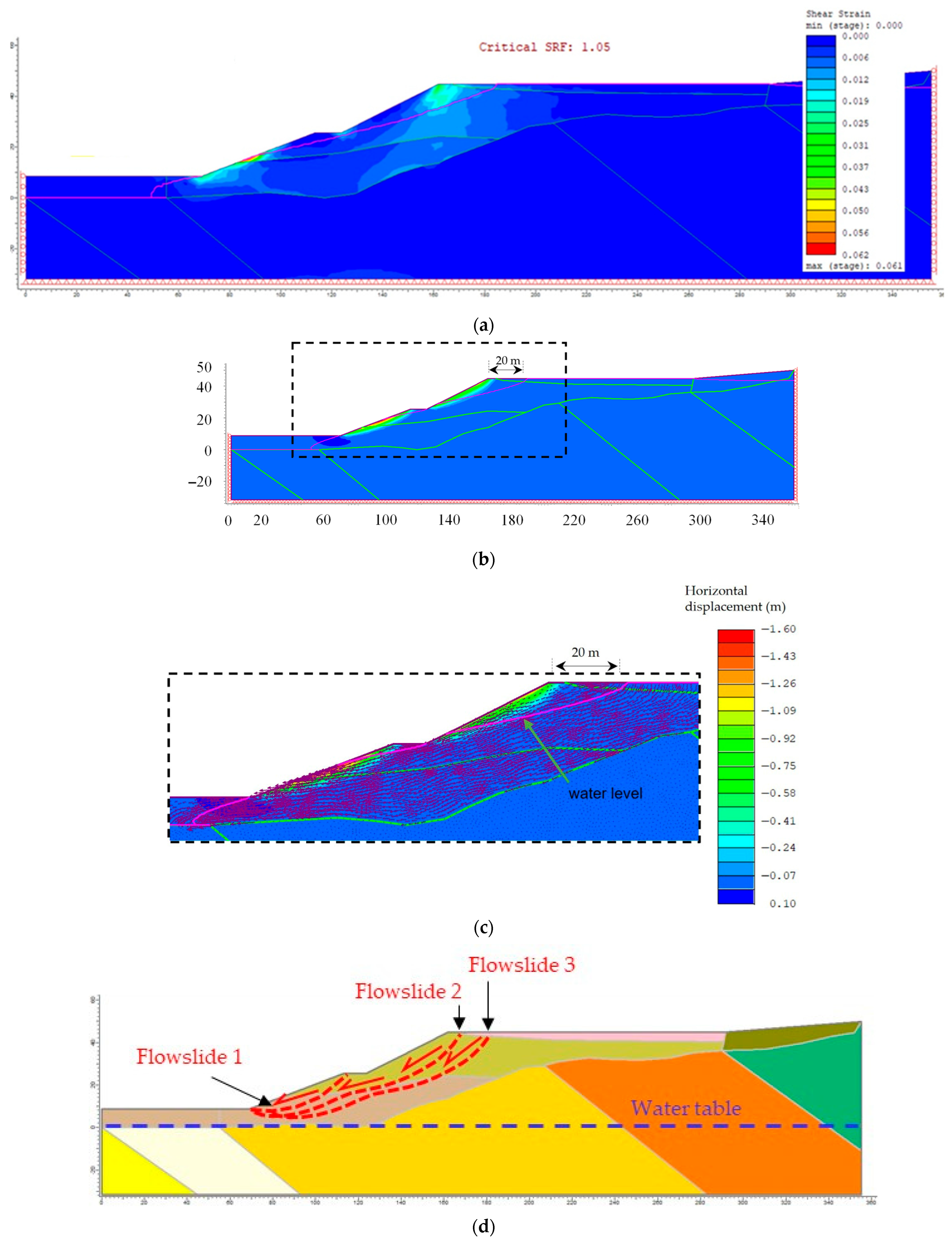 - Conte, E.; Silvestri, F.; Troncone, A. Stability analysis of slopes in soils with strain-softening behaviour. Comput. Geotech. 2010, 37, 710–722. [Google Scholar] [CrossRef]