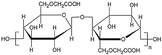 In the presence of starch, as shown in Figure 5a, a slight shift to the negative direction was observed on the zeta potential of dolomite, which is in agreement with [51]. Similarly, when CMC was added, significant shifts to the negative direction could be observed (as shown in Figure 5a), which was also observed in [80]. Starch, including amylose and amylopectin types (structures shown in Figure 7), contains hydroxyl groups (―OH) in their molecules [82]. CMC has a similar structure as starch in that it is composed of long chains with hydrophilic hydroxyl and carboxylic groups (as seen in Figure 8). In solution, these groups could undergo hydrolysis and become negatively charged, making the surface they adsorb on negatively charged. However, the adsorption mechanism of starch and CMC on dolomite cannot be confirmed by zeta potential alone due to the same reason stated for OA. Previous studies on dolomite suggested the adsorption mechanism is physisorption for starch [51] and chemisorption for CMC [80].