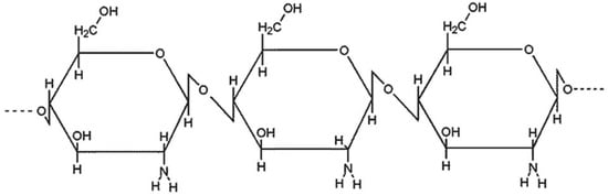 Chitosan, the main component of crustacean shells, is a natural polyaminosaccharide produced by deacetylating chitin [84]. A schematic presentation of its structure is shown in Figure 9, from which it can be observed that it contains carboxylic acid (―COOH), amine (―NH3), and hydroxyl (―OH) functional groups. As shown in Figure 5a, in the presence of chitosan, the zeta potential of dolomite showed slight shifts in the positive direction at pH 3–6, and a slight negative shift at pH > 6. The IEP of dolomite shifted correspondingly from approximately 10.5 to 8. This might suggest the adsorption of chitosan and the adsorption mechanism on dolomite might be related to the pH. The adsorption of chitosan on dolomite and the corresponding mechanism remain to be investigated further; previous work on fluorite proposed chitosan chemisorption on Ca sites [85], suggesting its potential affinity to Ca sites.