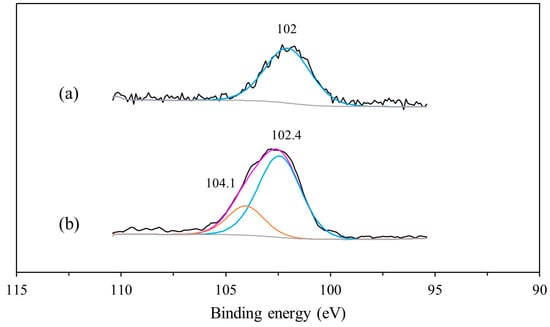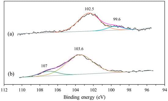 Figure 11. Si2p spectra of (a) dolomite and (b) dolomite + SS at pH 7.