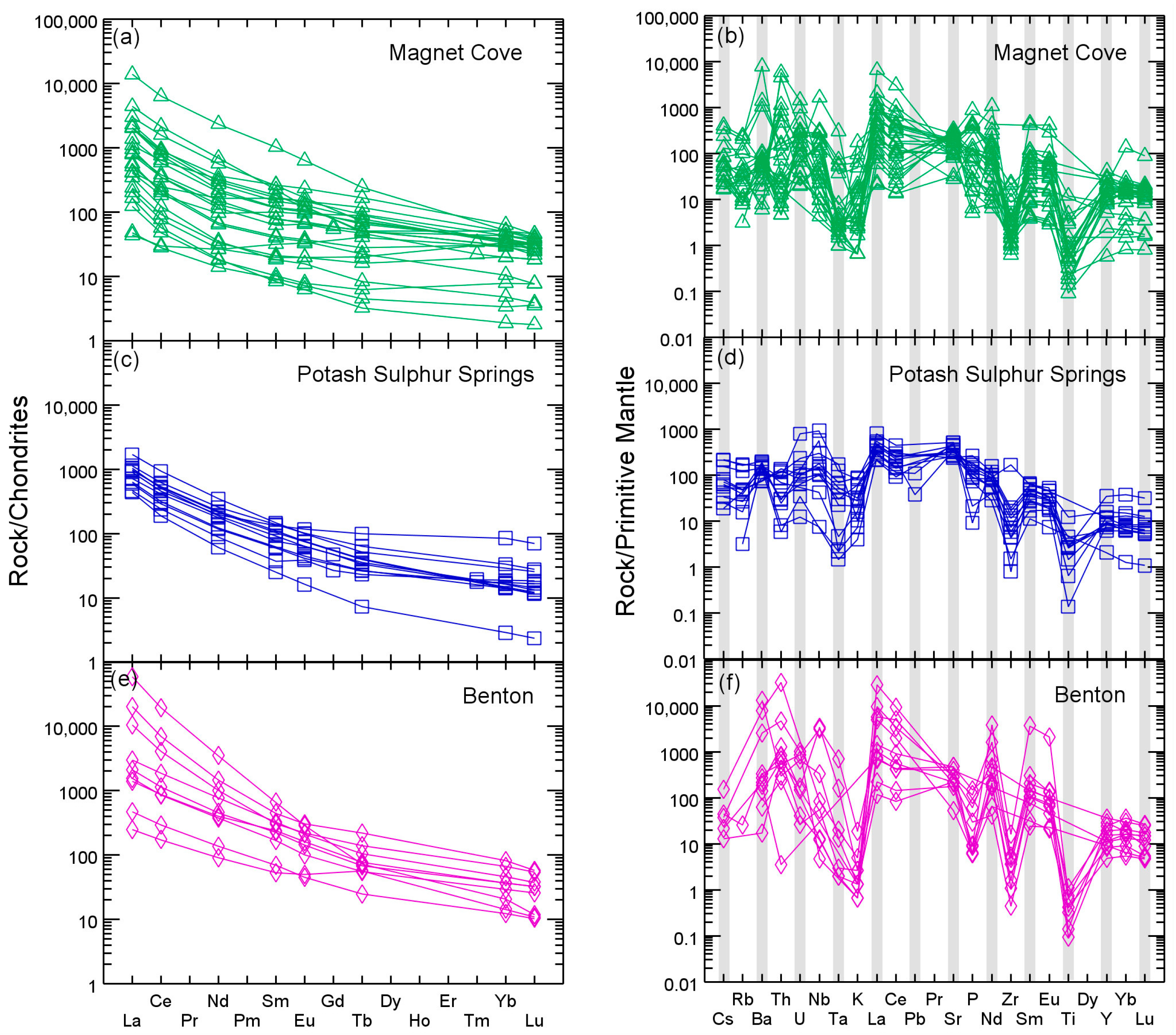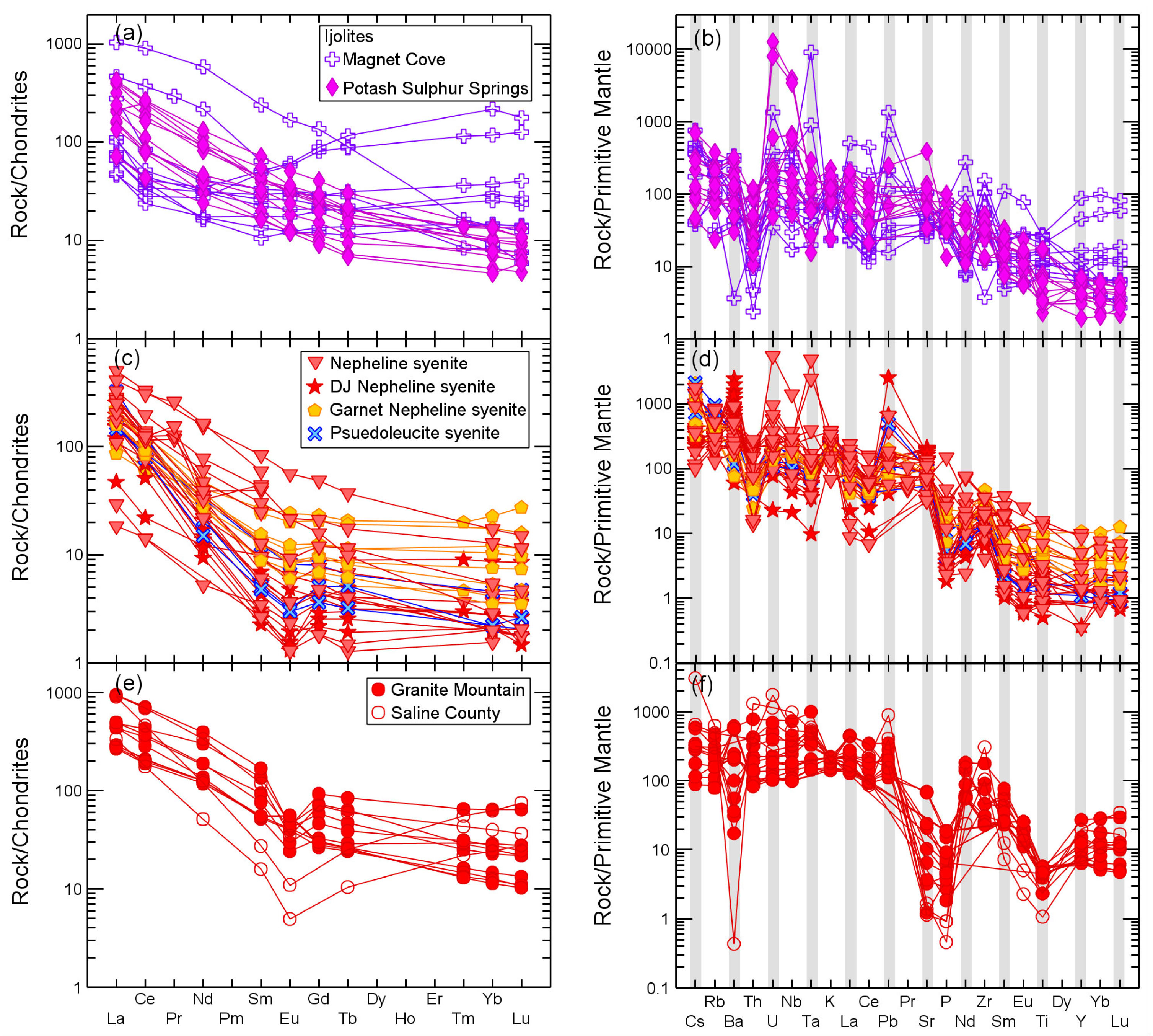 Eby, N.; Charnley, N.; Tiella, G.; Burkhardt, L. The Arkansas Alkaline Province, Southeastern USA: A Synthesis of New and Existing Chemical and Petrologic Data and Petrogenetic Considerations. Minerals 2025, 15, 1133. https://doi.org/10.3390/min15111133