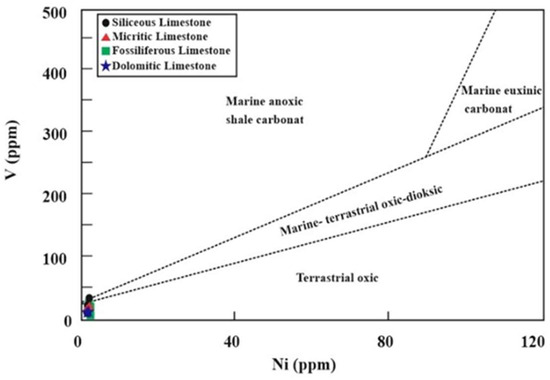 Plot of Ni versus V concentrations for the limestone samples [130].