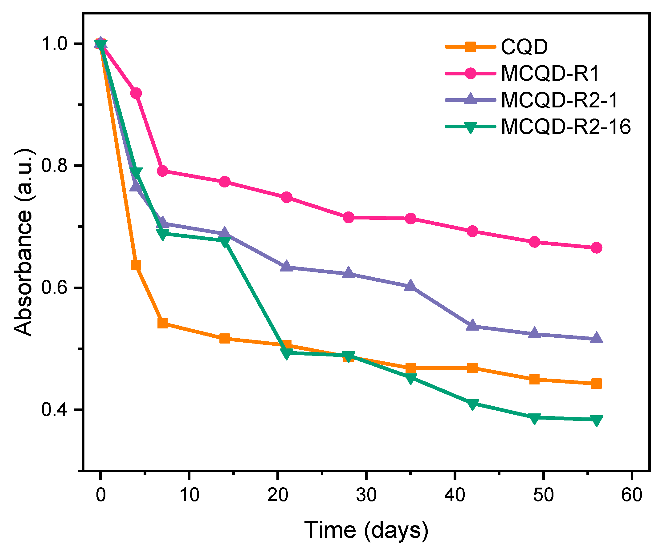 - Zhai, Y.; Shen, F.; Zhang, X.; Jing, P.; Li, D.; Yang, X.; Zhou, D.; Xu, X.; Qu, S. Synthesis of Green Emissive Carbon Dots@montmorillonite Composites and Their Application for Fabrication of Light-Emitting Diodes and Latent Fingerprints Markers. J. Colloid. Interface Sci. 2019, 554, 344–352. [Google Scholar] [CrossRef]